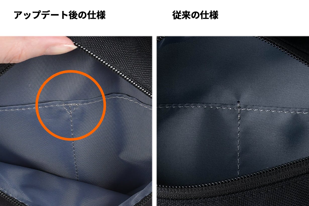 もう1点補強を加えたのが、ショルダーベルトの縫い込み箇所です。