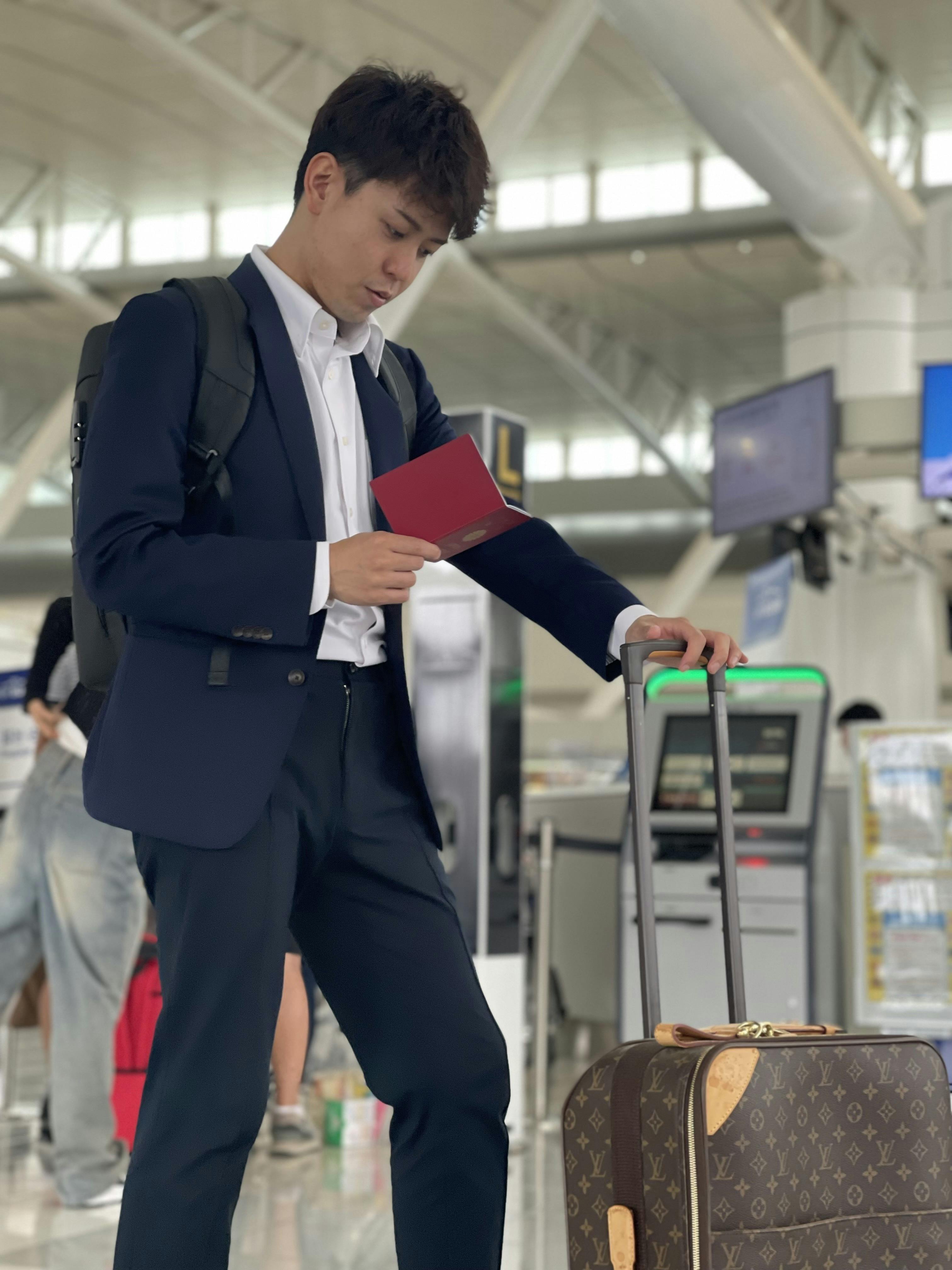 ノートPC、タブレット端末、電源コード、スマートフォン、モバイルバッテリー、バインダー2冊、システム手帳、筆記用具、名刺入れ、長財布、500mlペットボトル、薬、ハブラシセット、ヘッドフォン、メガネケース、文庫本、変換プラグ・変圧器、パスポートケース。
