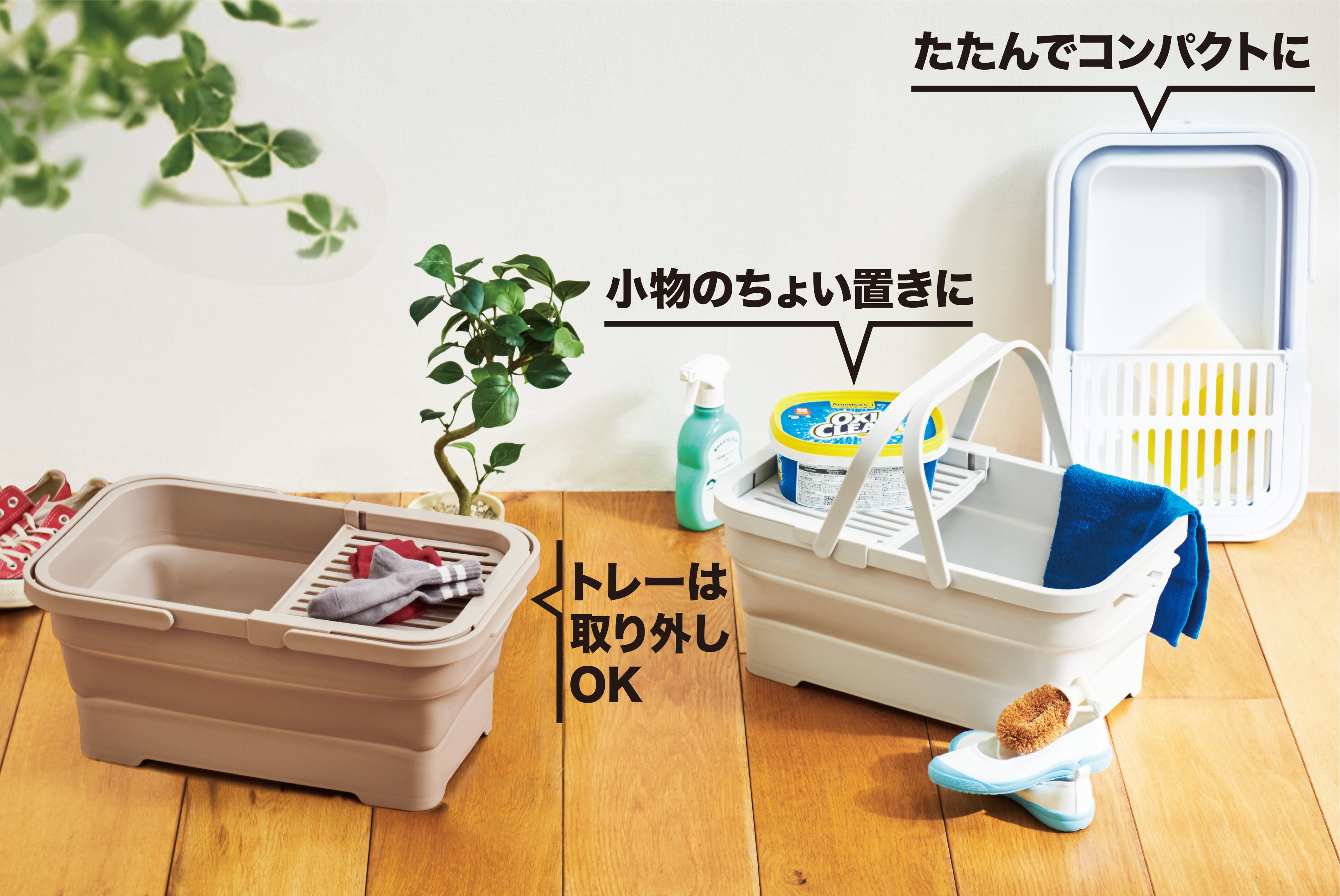 ・商品名:おりたためるバスケット15L ちょい置きトレー付