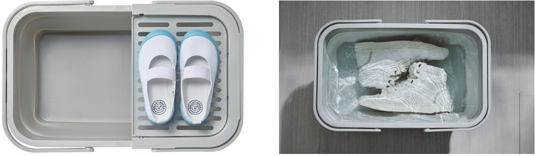 本製品は、トレーに洗剤を置くスペースがあるので、場所を選ばず使用できます!