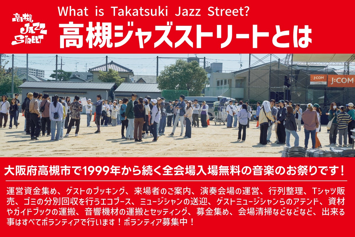 1999年から、今回2025年第27回まで、新型コロナウイルスの影響で中止を余儀なくされた2年間を除き、高槻ジャズストリートは無料でイベントを開催してまいりました。
