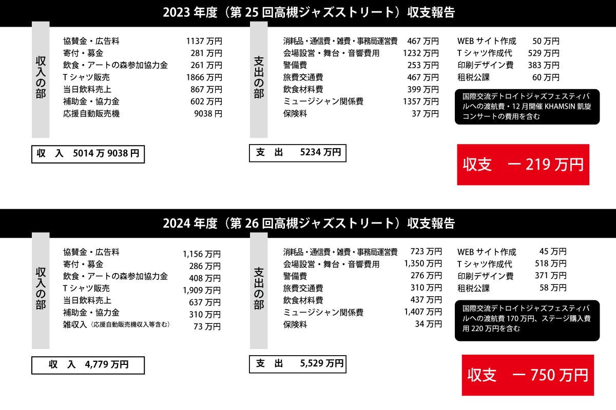 そして2024年の開催では年間で約5000万円の経費がかかり、750万円の赤字となりました