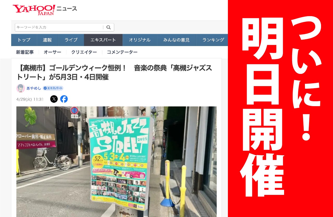 このたび「高槻ジャズストリート」が、Yahoo!ニュースにも取り上げられました!