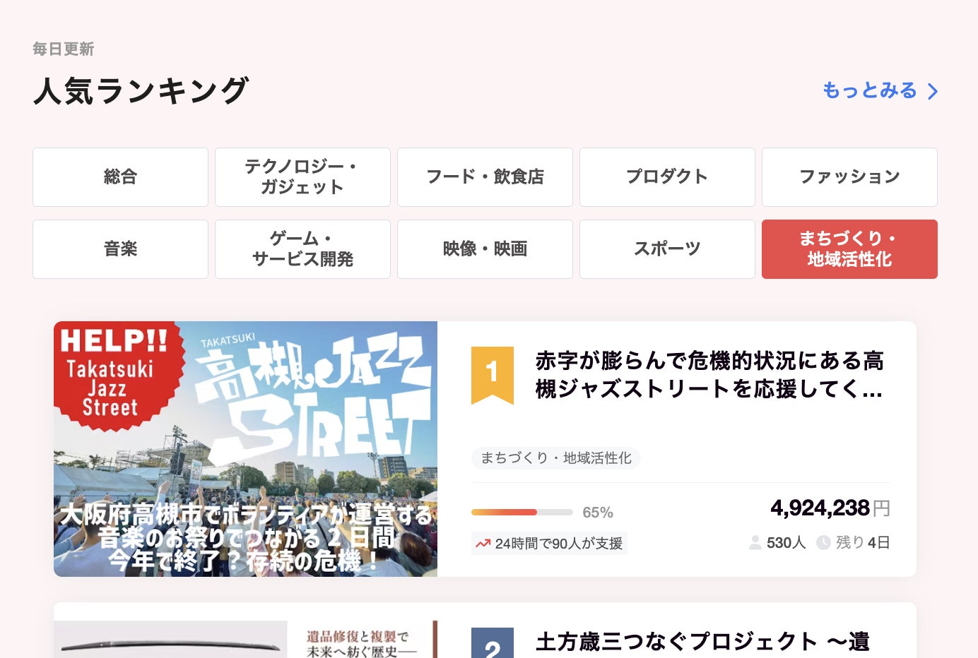 高槻ジャズストリートのクラウドファンディングが、CAMPFIREの人気ランキングで1位を獲得しました!