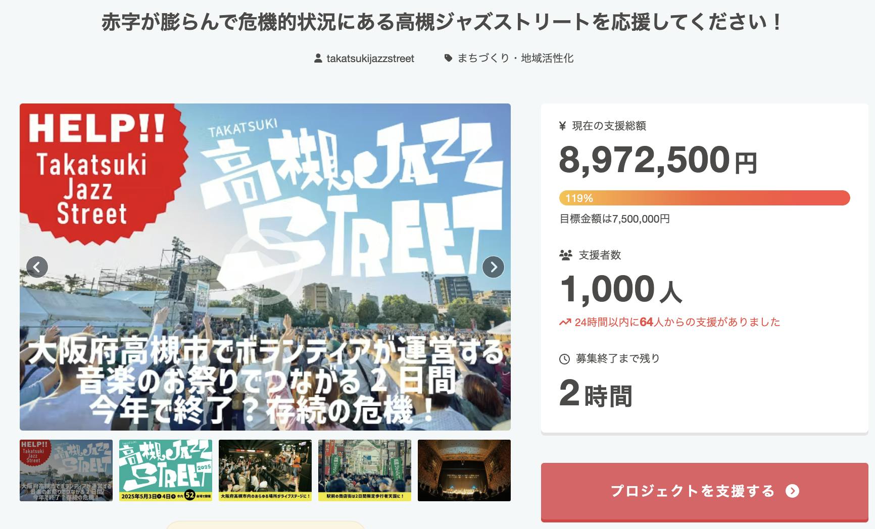 このたび「第27回 高槻ジャズストリート」のクラウドファンディングにおいて