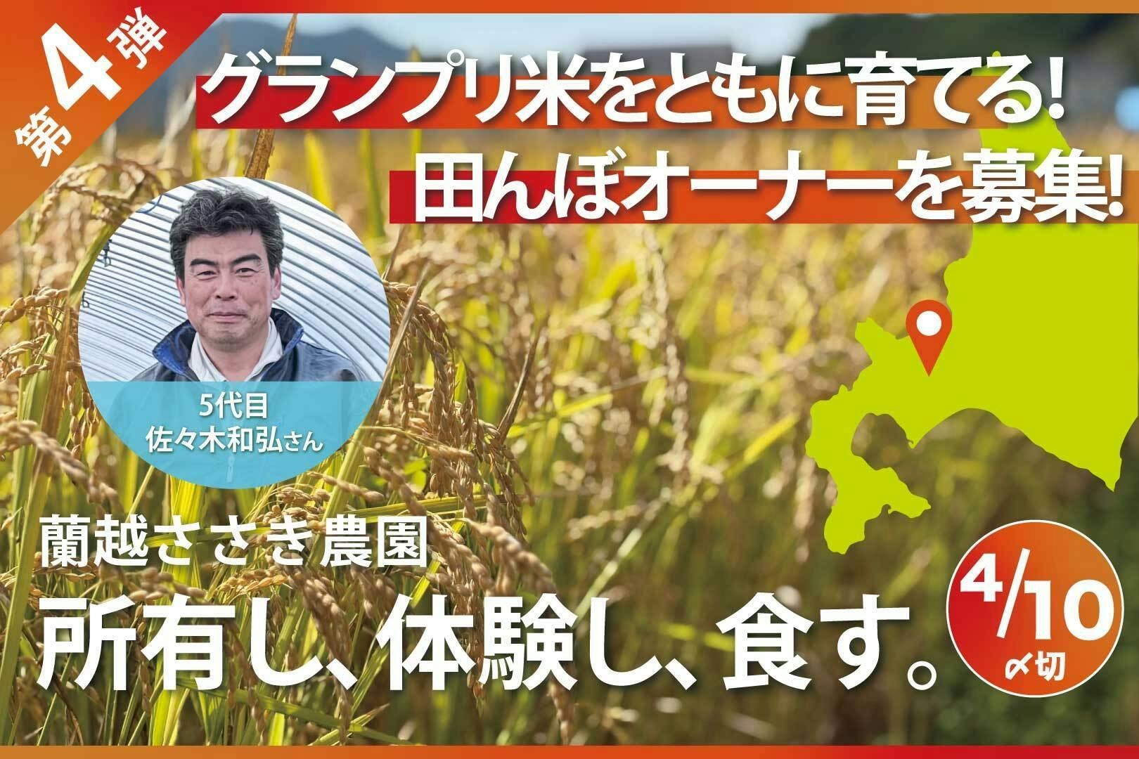 「所有し、体験し、食す。」グランプリ米を育てる、北海道「蘭越ささき農園」の田んぼのシェアオーナーになりませんか?