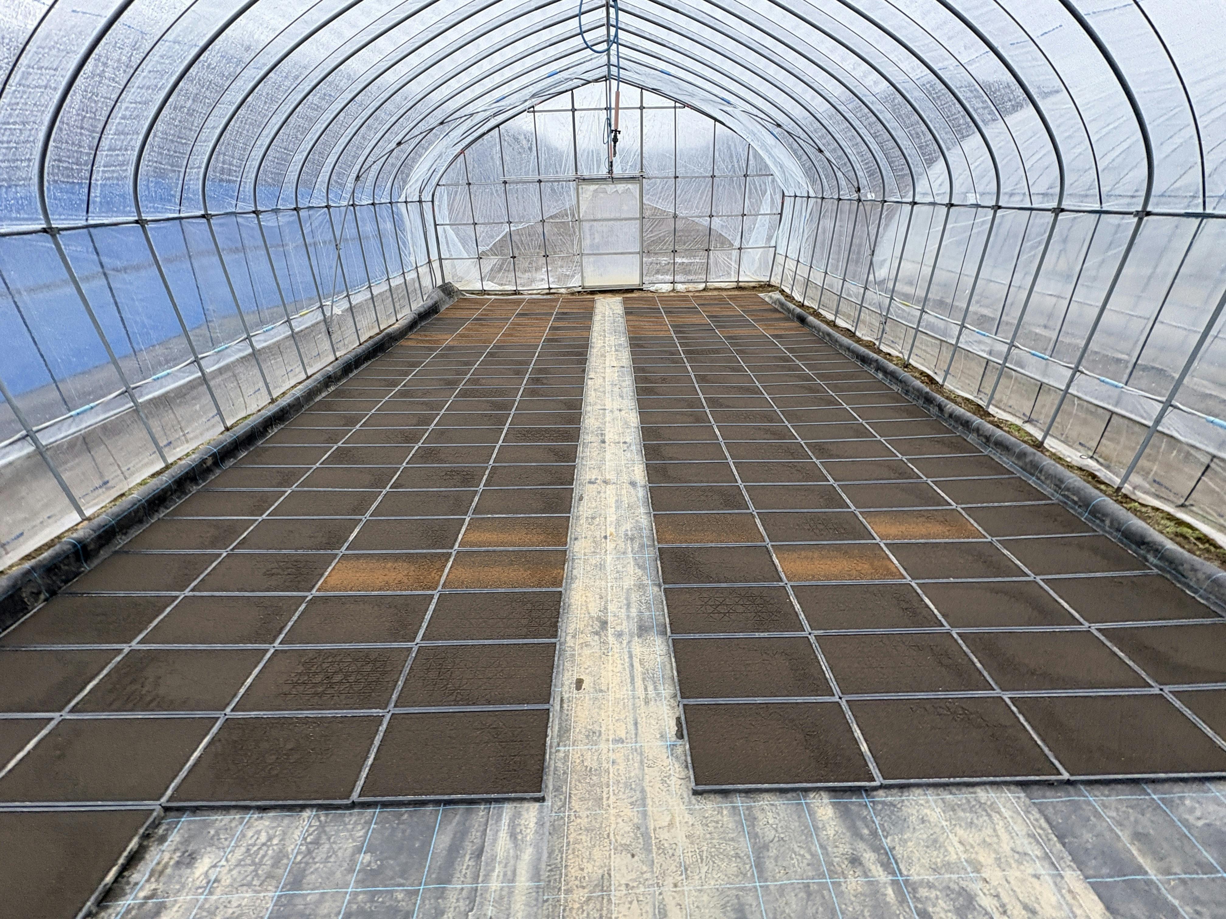でないと、パレットの中の籾たちが動いてしまい上手に育ちません(^0^;)