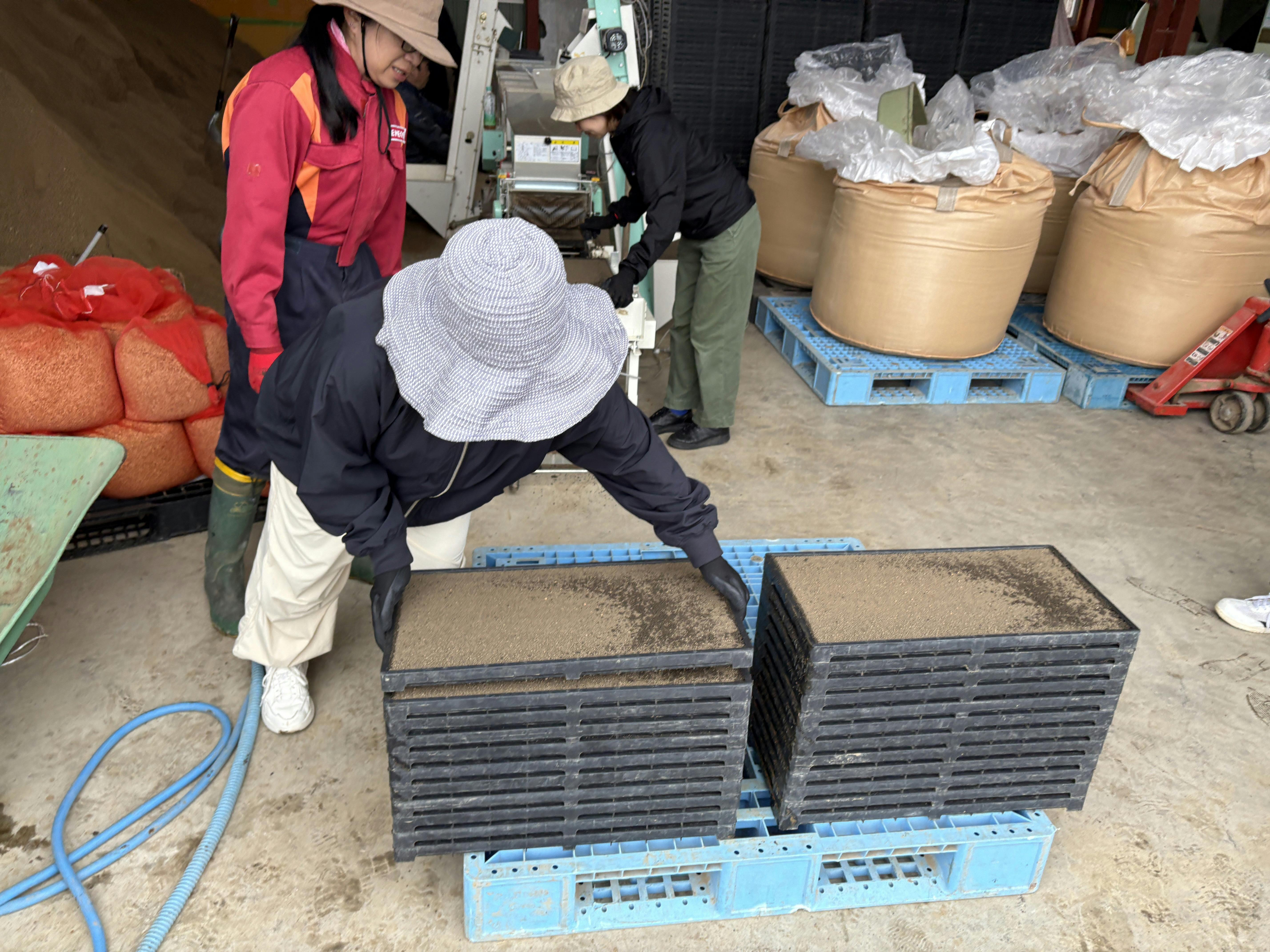 今回の作業は「床土(とこつち)づくり」というお米作りにおいてとても重要な作業です。床土づくりとはお米が元気に育つための「土台の土」を整える作業のことです。いわば、お米のベッドづくりのようなものです。