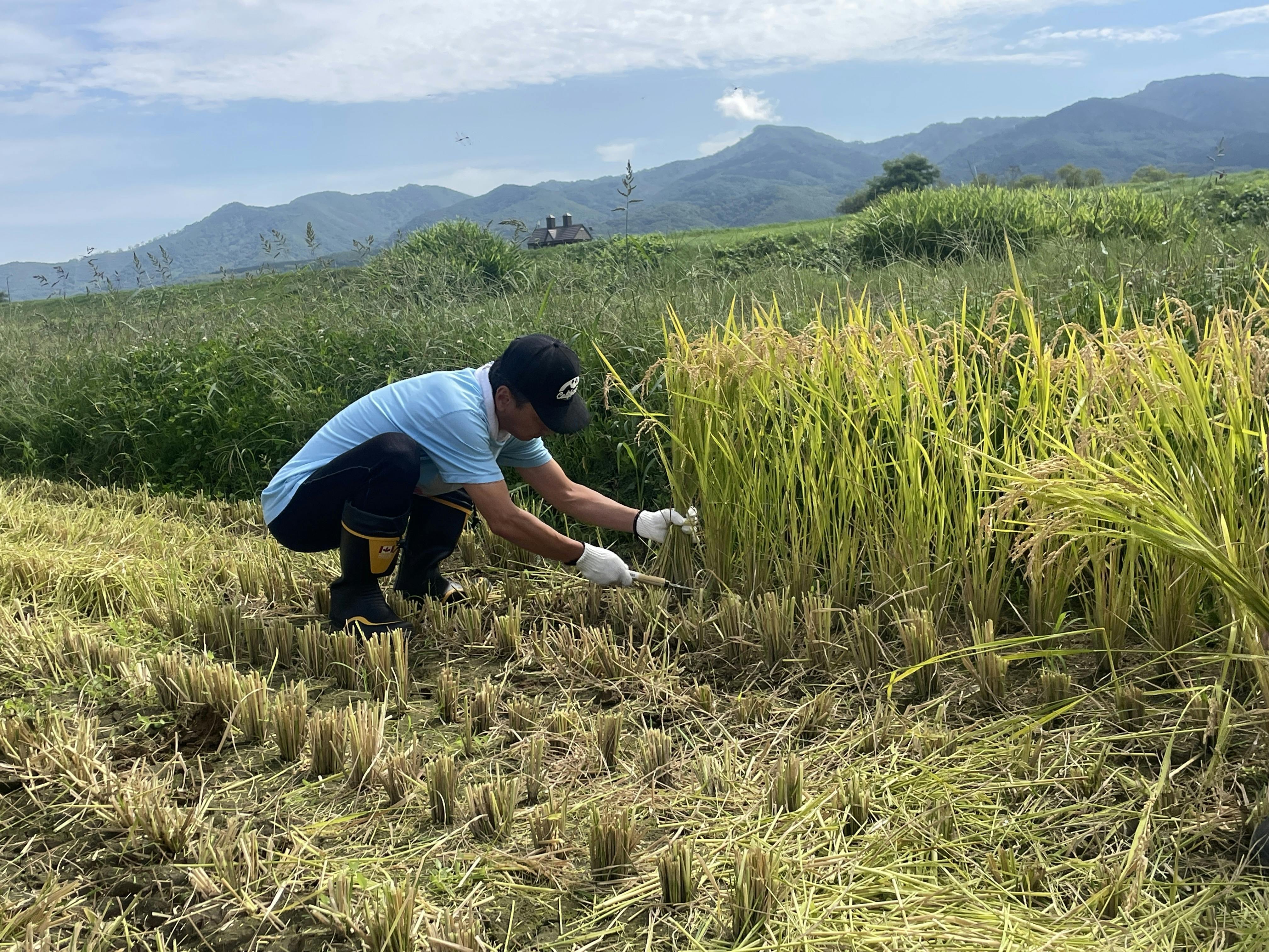2025年9月6日(土)、当日は13人で稲刈りの作業を行いました!