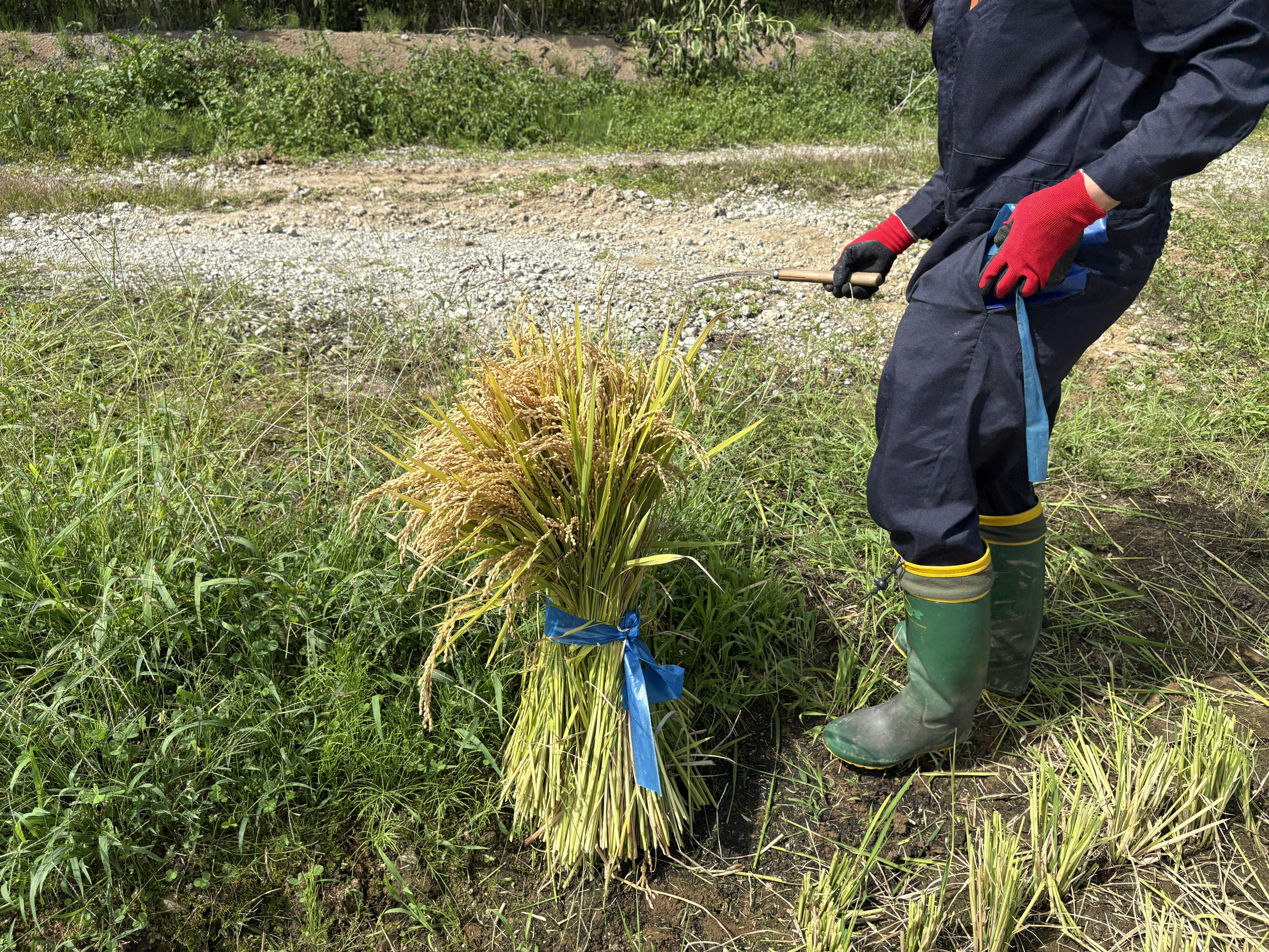 実際に育てた稲を自分の手で刈り取る作業はなにか達成感のようなものを感じました。