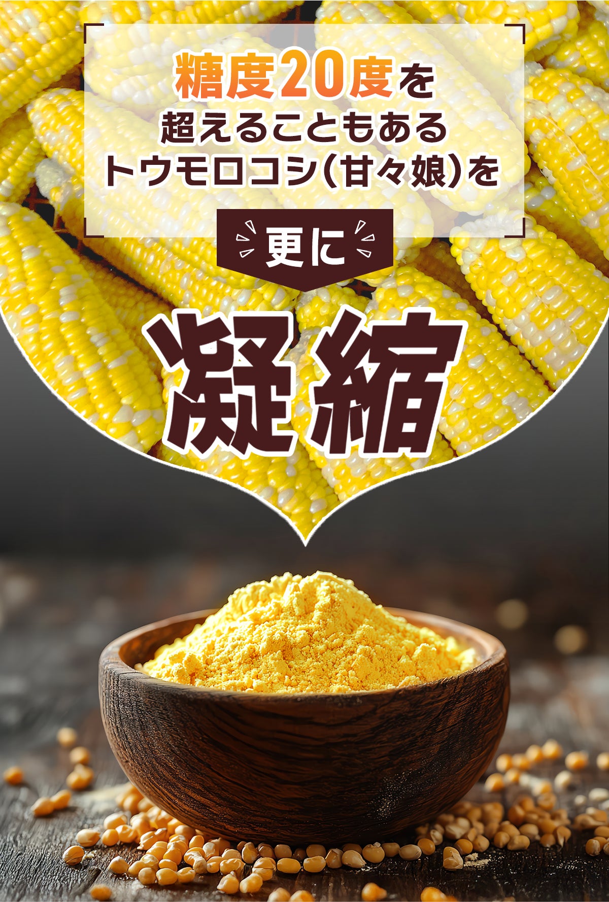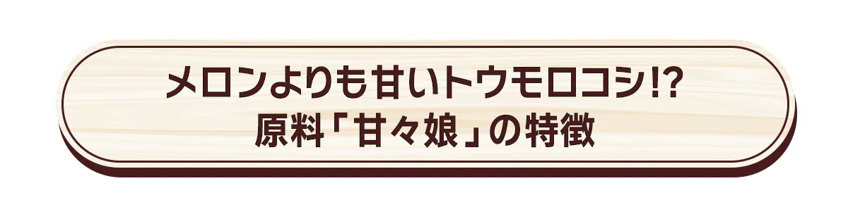 そのため、素材そのものの甘さと凝縮したことで生まれた濃厚さは、一般に販売されているトウモロコシ粉とは一味違います。