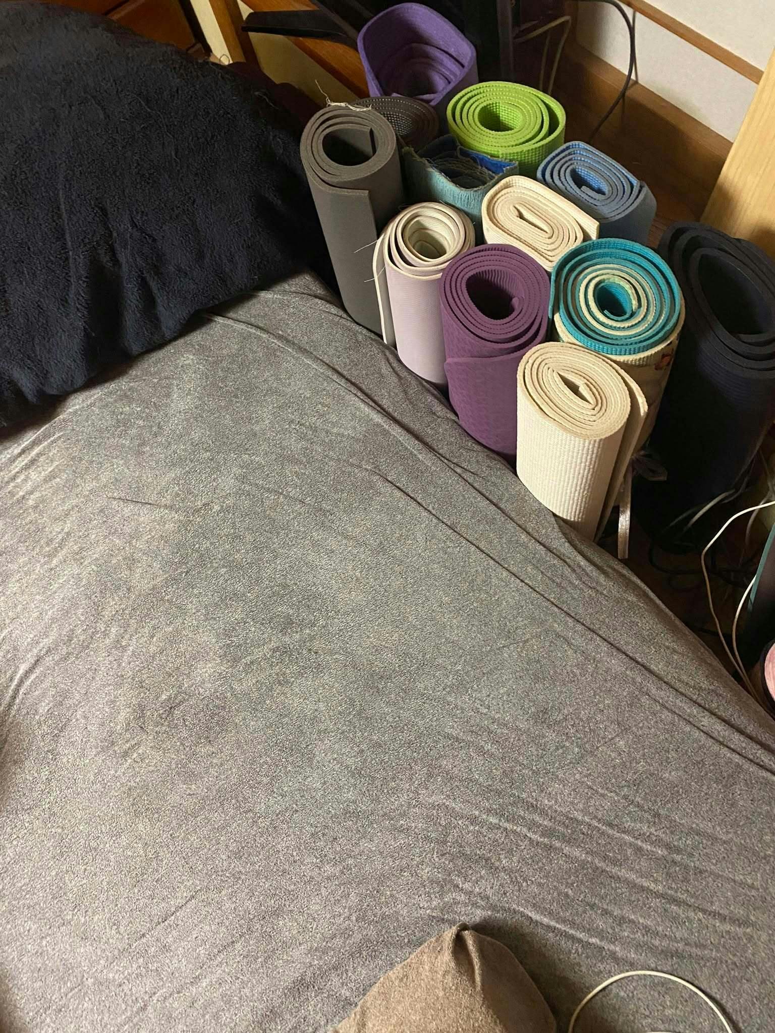 現在、皆様のご協力により回収させていただいたマットは、僕の寝室や物干しスペースなど、ありとあらゆる隙間に保管しています。