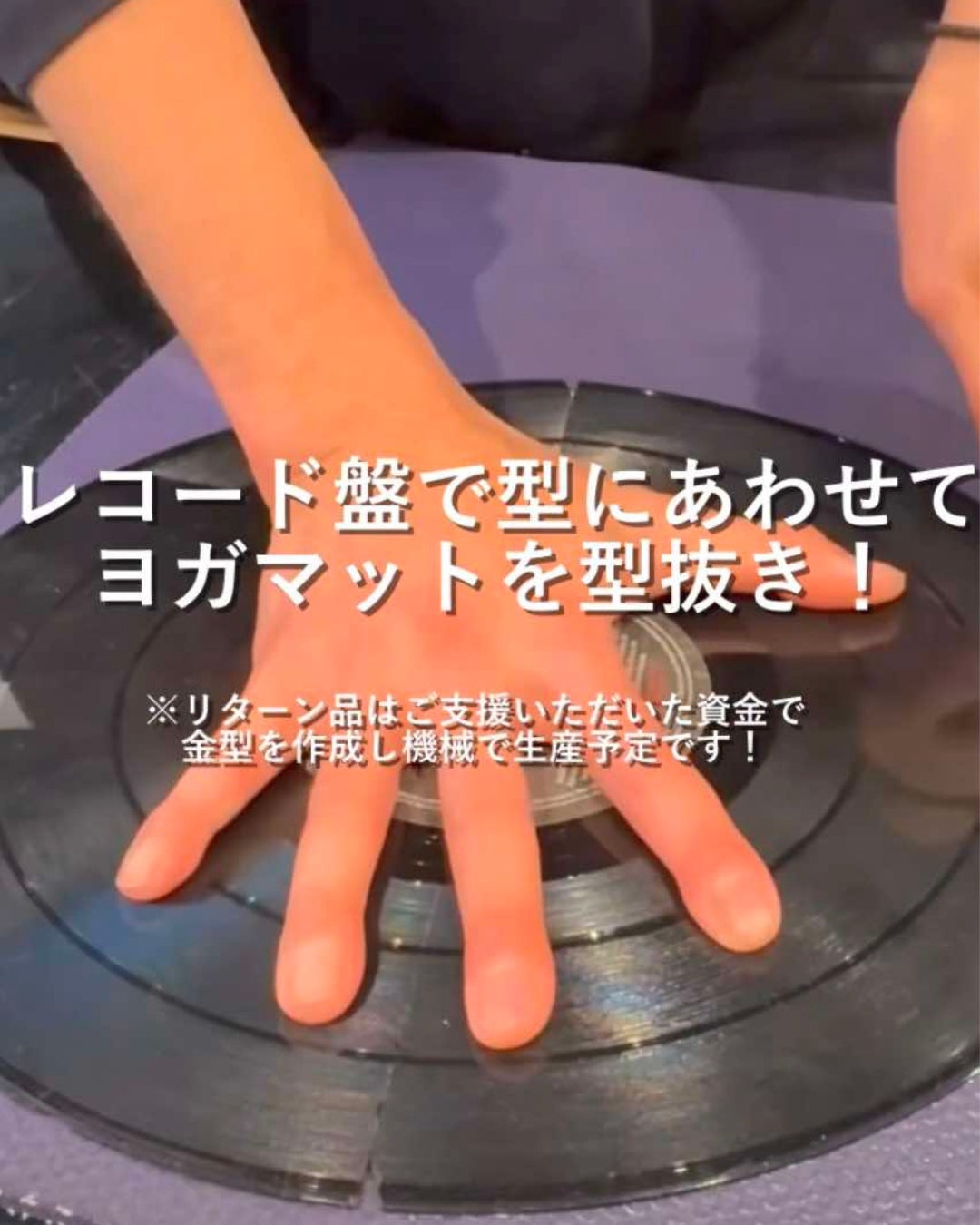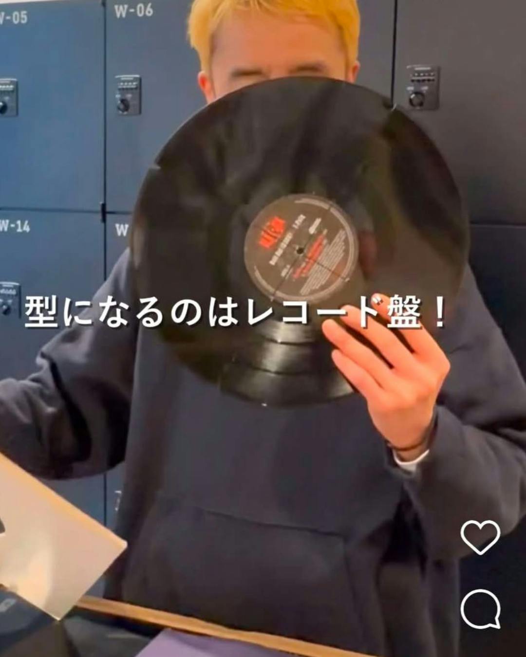 型紙にしている「レコード盤」は、傷が入って聴けなくなってしまったものを使用しています。