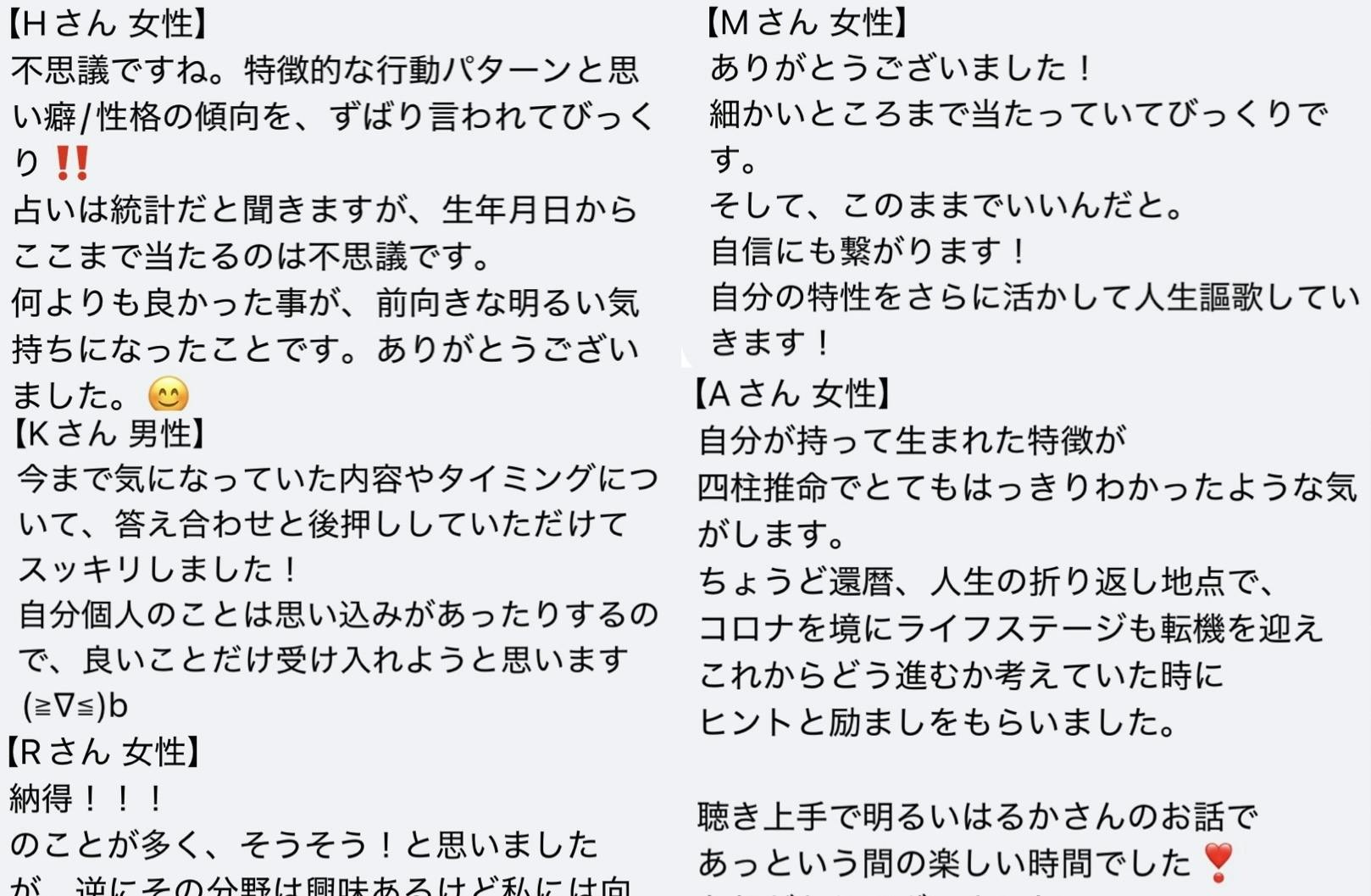 昨年の100名鑑定終了後、たいへんご好評いただいております、鶴丸はるかによるzoomでの鑑定30分と、鳥海流四柱推命鑑定書(全8ページ)の発行をご提供します♪