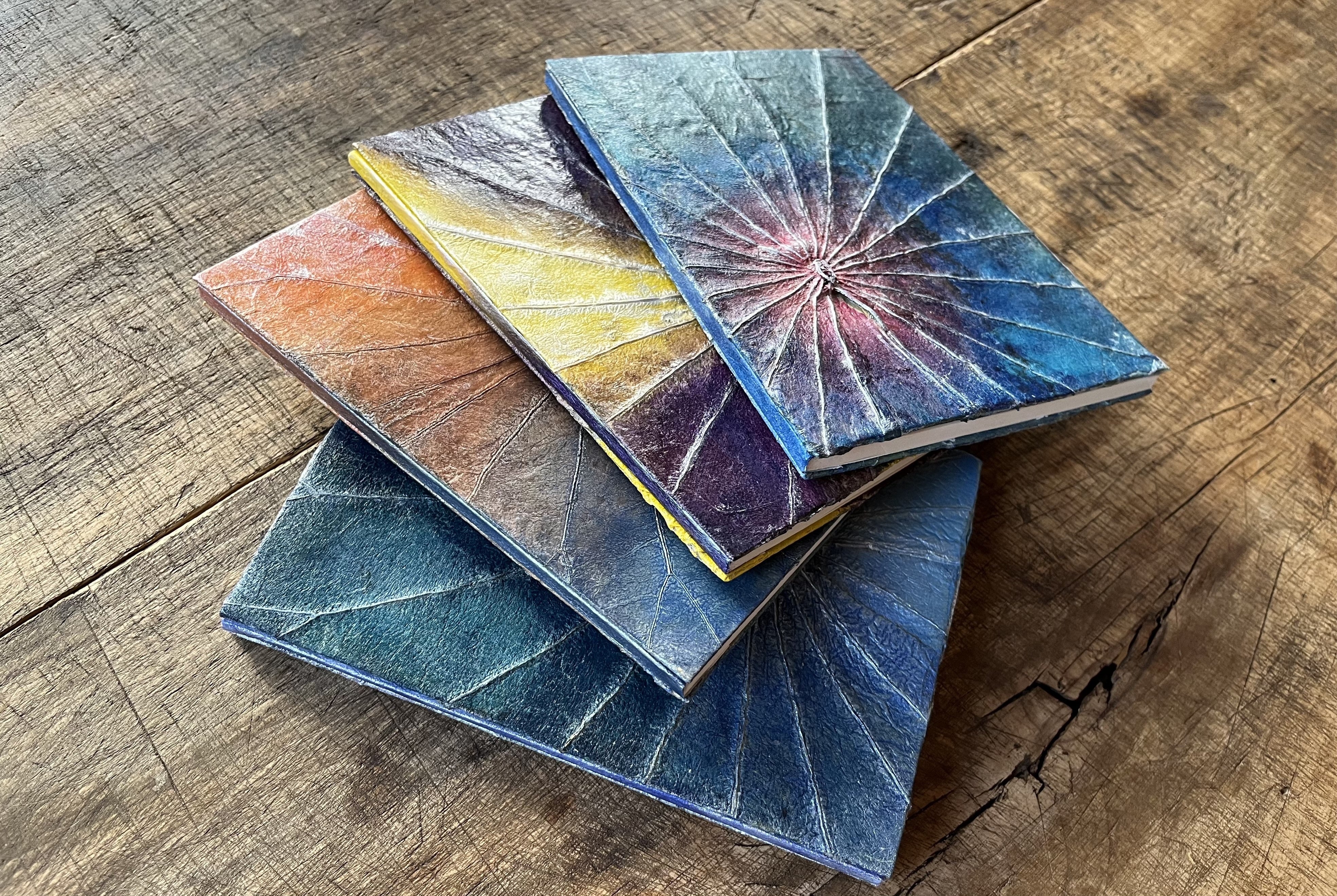 天然の蓮の葉で心を込めて製作したハンドメイドのボタニーペインティング「御朱印帳」、もしくは「Bonita Botany ノート(B6サイズ)」をご提供します!