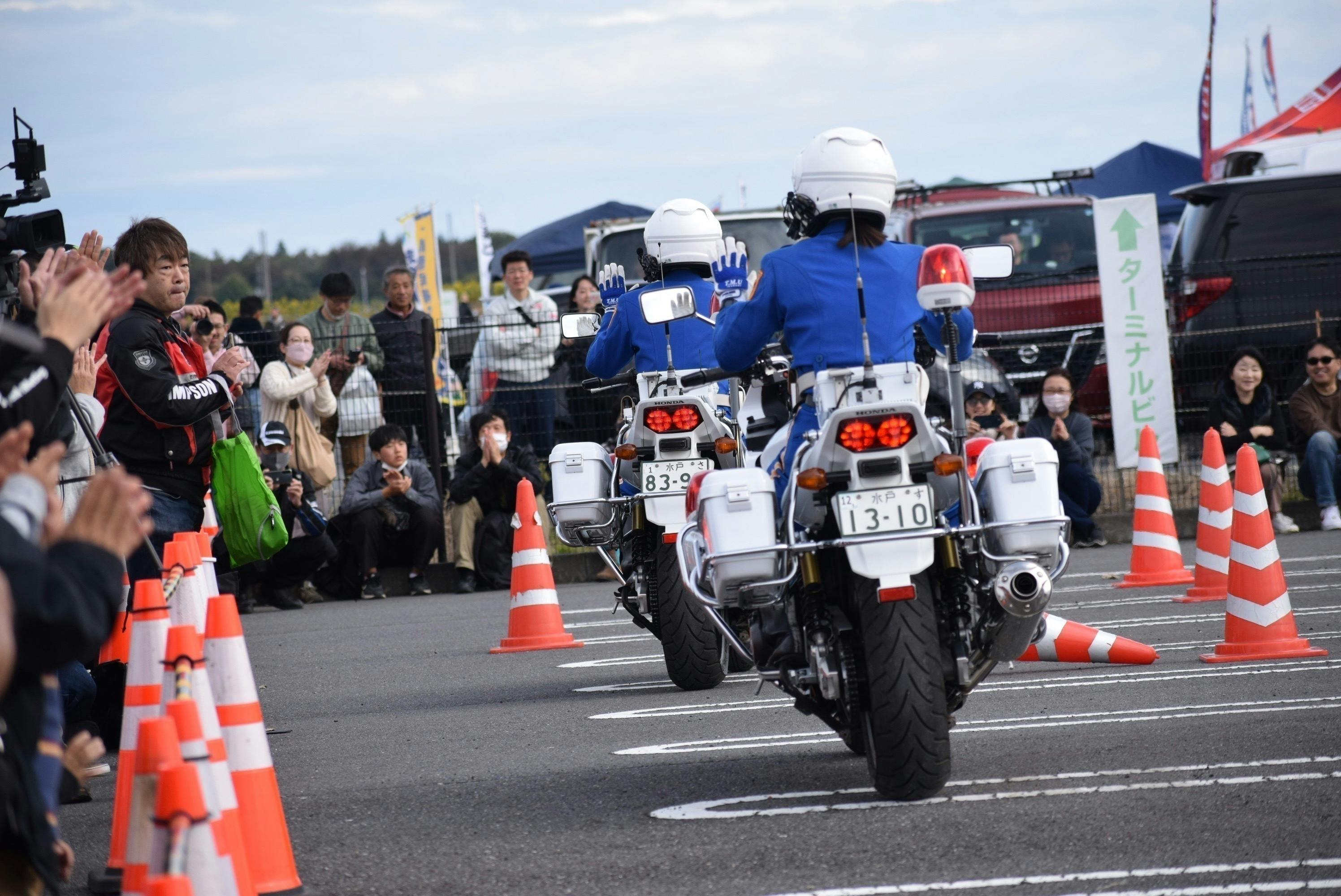 ・交通安全の啓発活動の一環でJAFや地元警察・白バイのデモンストレーションも実施。