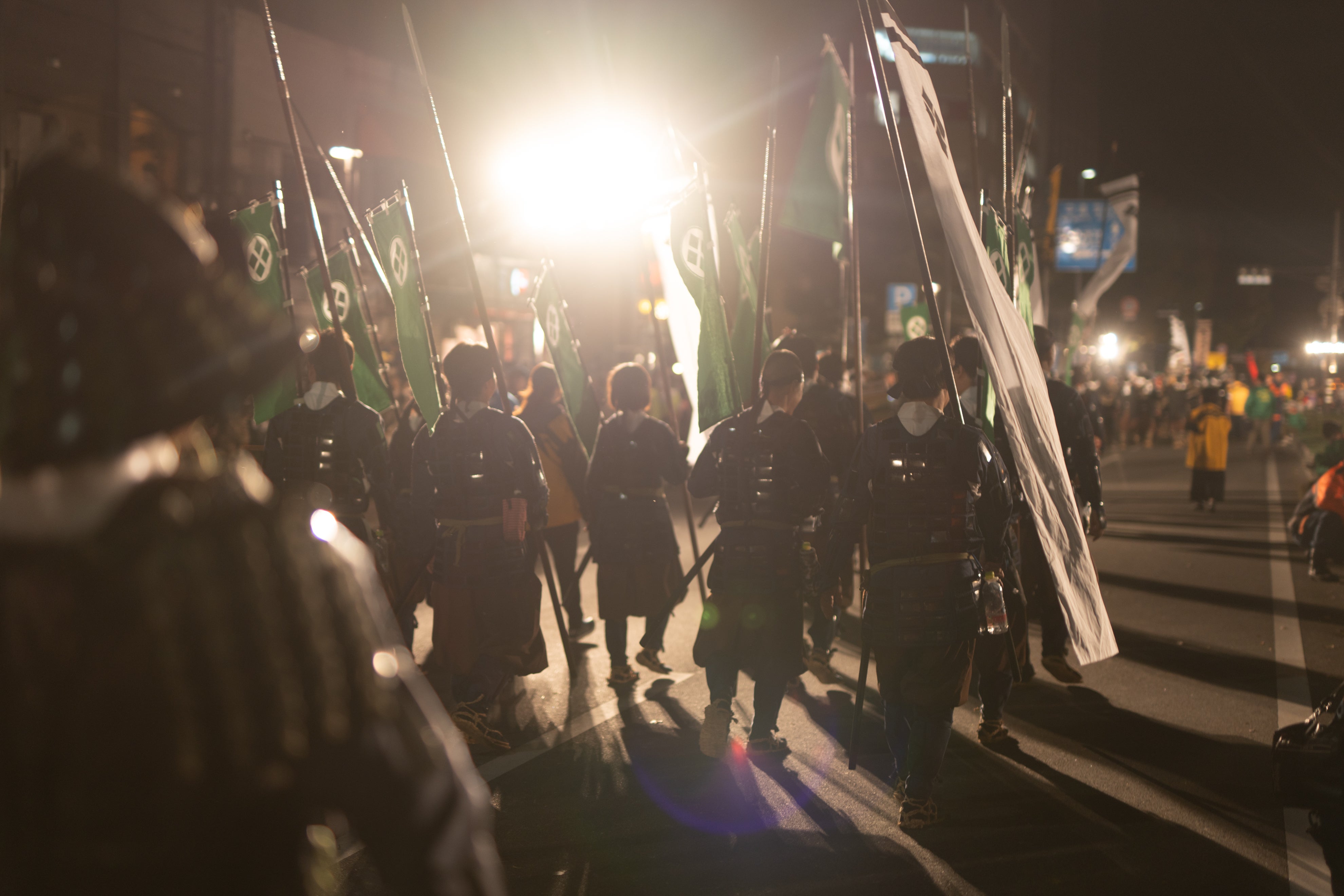 武田信玄が、現在の北陸地方を支配した戦国大名・上杉謙信と激突した「川中島合戦」に出陣する様子を再現しています。1,000人を超える参加者が戦国武者姿で集結する様は圧巻。一帯では一大戦国絵巻が展開されます。