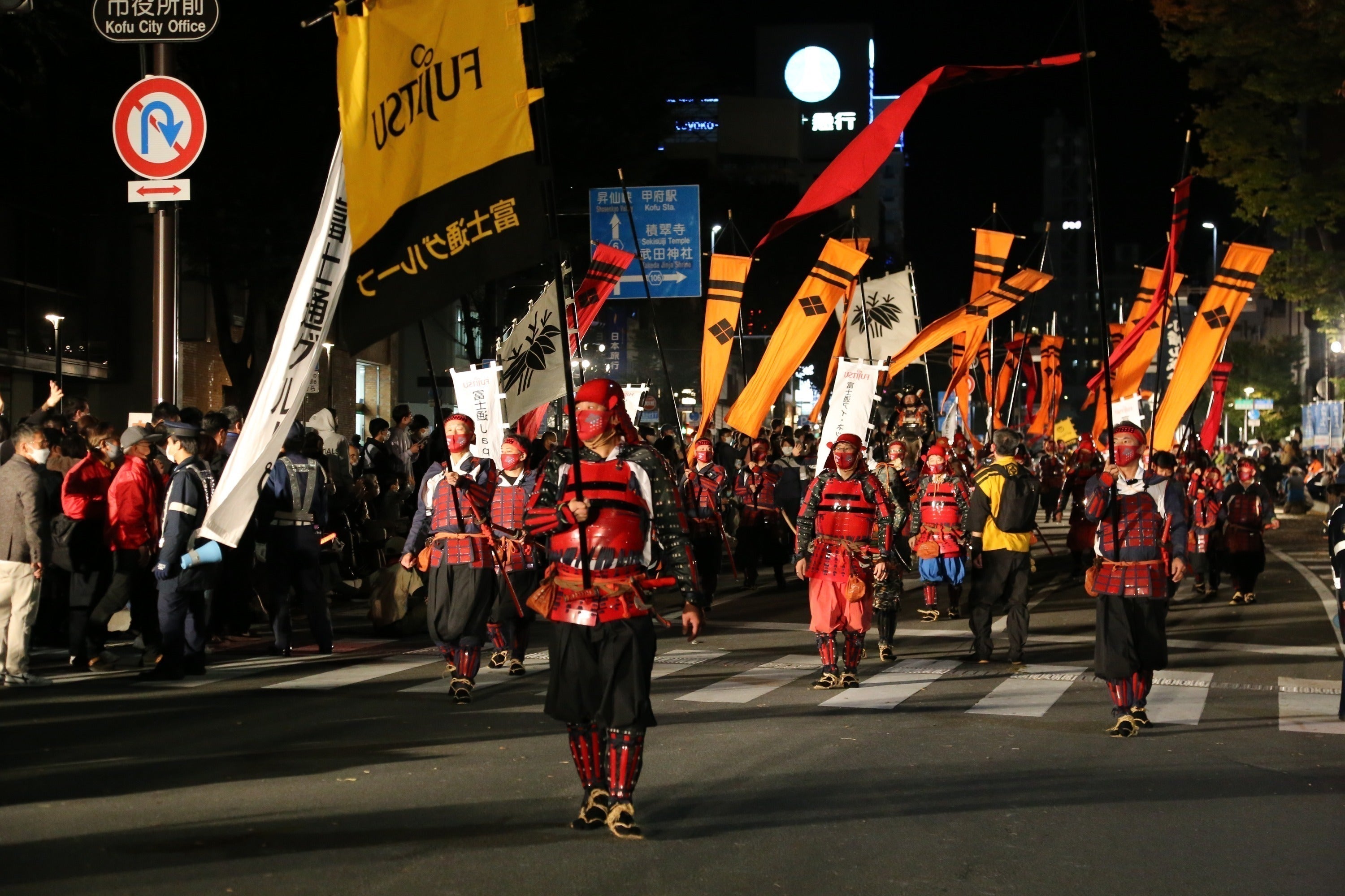 メインイベントの武者行列のほかに、花火の打ち上げや100を超える屋台が立ち並び、国内外から大勢の観光客が訪れ、山梨県最大のお祭りとしてにぎわいをみせます。