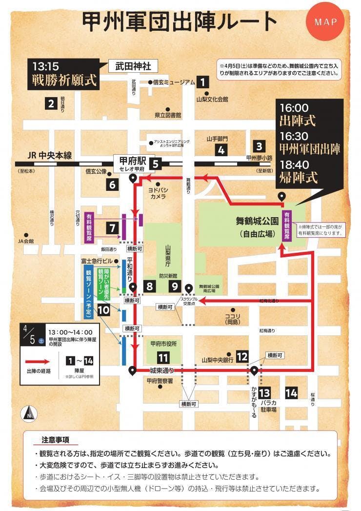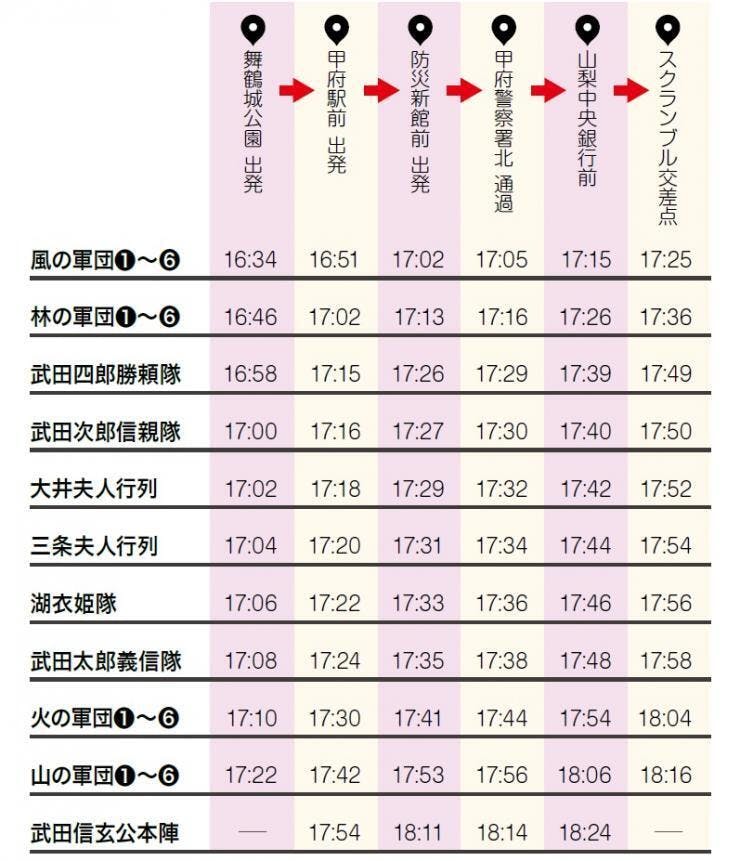 来る4/5(土)の信玄公まつりの武者行列の詳細スケジュールが決まりましたのでご報告いたします。