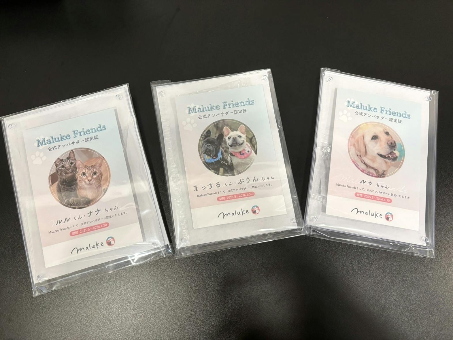 皆さんこんにちは!Malukeです。アンバサダー権のリターンをご支援頂いた皆様、お待たせいたしました。全てのアンバサダー認定証を本日発送させて頂きました!皆様から可愛い犬猫ちゃんの写真が届く度微笑ましい気持ちになり、スタッフ一同癒されながら制作と発送準備をしておりました。Malukeでは、公式アンバサダーの皆様のことを親しみを込めて「Maluke Friends」と呼んでいます。Maluke Friendsの皆様は、期間限定でMaluke公式SNSやHPへの掲載、商品開発座談会や製品モニターにご参加頂くことができます。今後も新しいMaluke Friendsを募集させて頂く機会を作っていきますので、ご興味がある方は是非MalukeのSNSをチェックしていてください!お問い合わせ|info@maluke.jpMaluke公式Instagram|@maluke_official