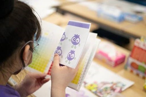 ブルブルくんや仲間たちの資料を見ていただきました。真剣な眼差しで、ブルブルくんの色を確かめていただいています。