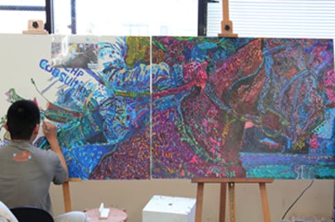 障がい者の方の社会参加を広げるための施設で、皆さんが創作・アートを日々楽しんでいます。