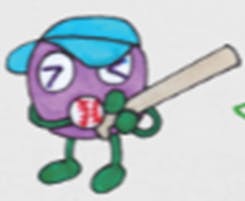 真ん中の野球をしているブルブルくんは、わかさ生活が毎年夏の甲子園大会で