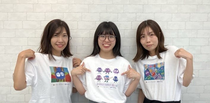 今回のTシャツは、わかさ生活のキャラクター「ブルブルくん」をテーマに、「アトリエやっほぅ!!」の利用者さんに描いていただいたイラストを使用させて頂いております。