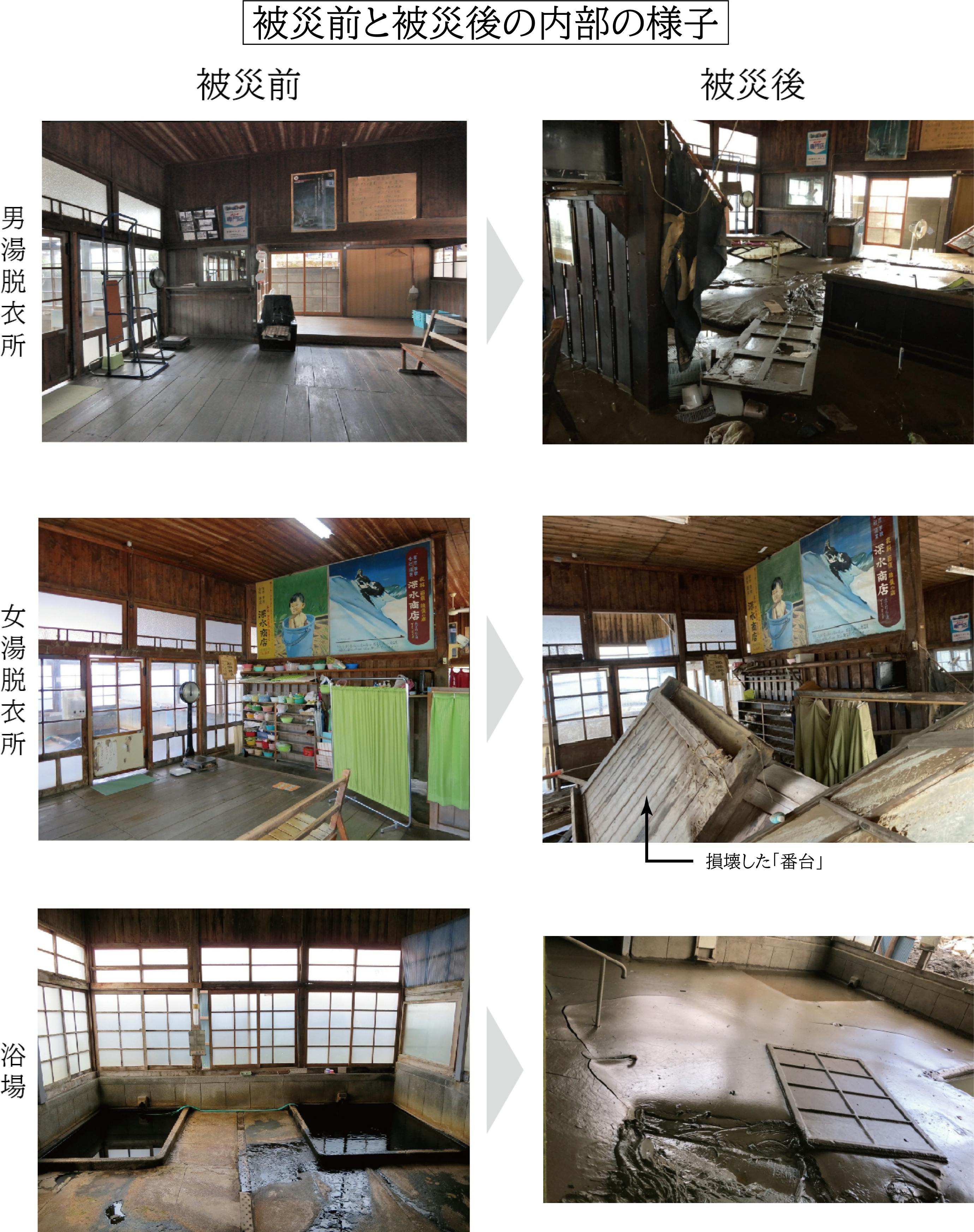 内部は泥に覆われ、泉源もボイラーも被害を受け、 すぐに営業を再開することは到底できませんでした。