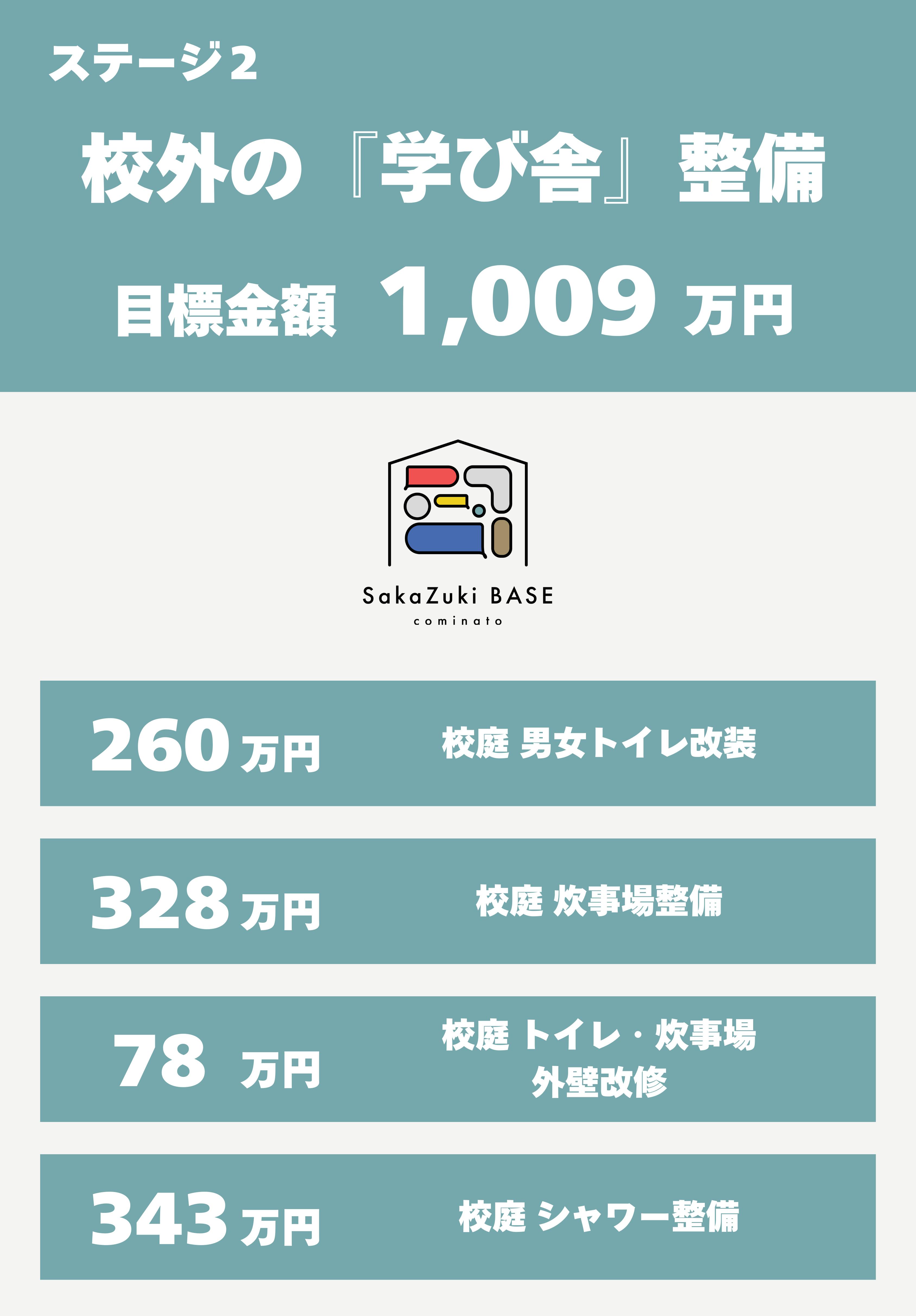 優先順位を考え、本クラウドファンディングも、2つのステージに分けて進めていくことにしました。