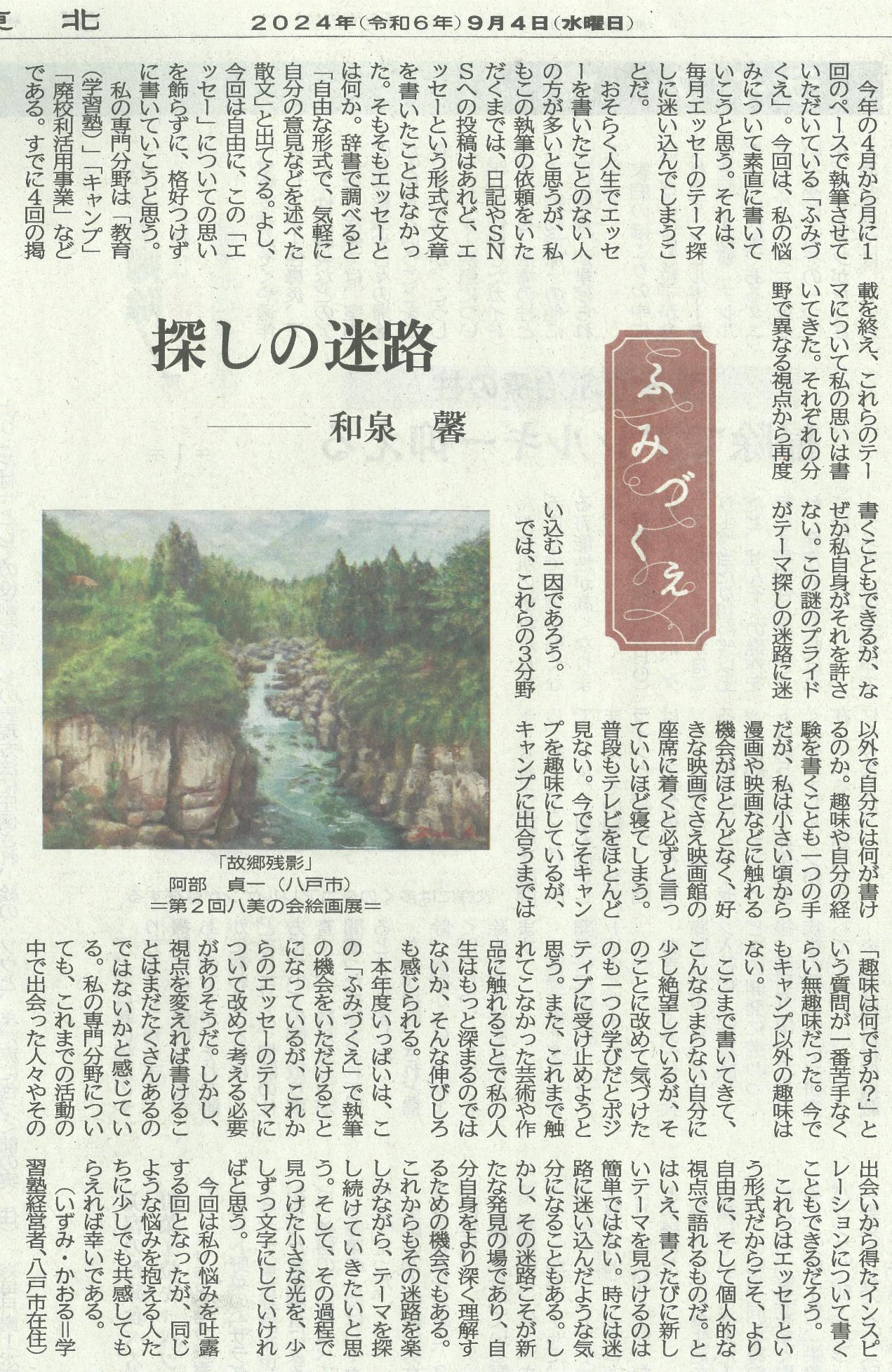 また、デーリー東北新聞社様からお声がけいただき、デーリー東北内の『ふみづくえ』というコーナーでエッセーの連載も執筆させていただいております。