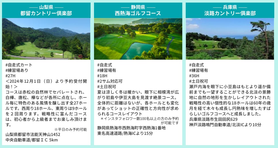 ※提携ゴルフ場は今後も拡大して参りますのでご期待ください
