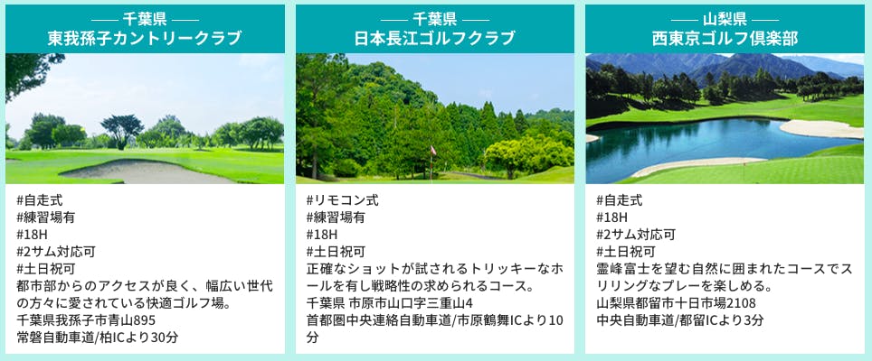 現在既に関東15コース、関西8コースの提携ゴルフ場様を、メンバー様が「プレイフィ無料」でプレイして頂く環境が整っています(土日祝日も対象)。また、通常3名以上の予約のみ受付ですが、ゴルフ場によっては2サムでのプレイも可能となっており、ご夫婦やカップルでのご利用ができます。将来的には、提携ゴルフ場を全国に拡大してメンバー様が全国どこでもプレイを楽しんで頂ける環境を整備したいと考えています。 *同伴者様は通常料金(ネットで販売されている料金)となります