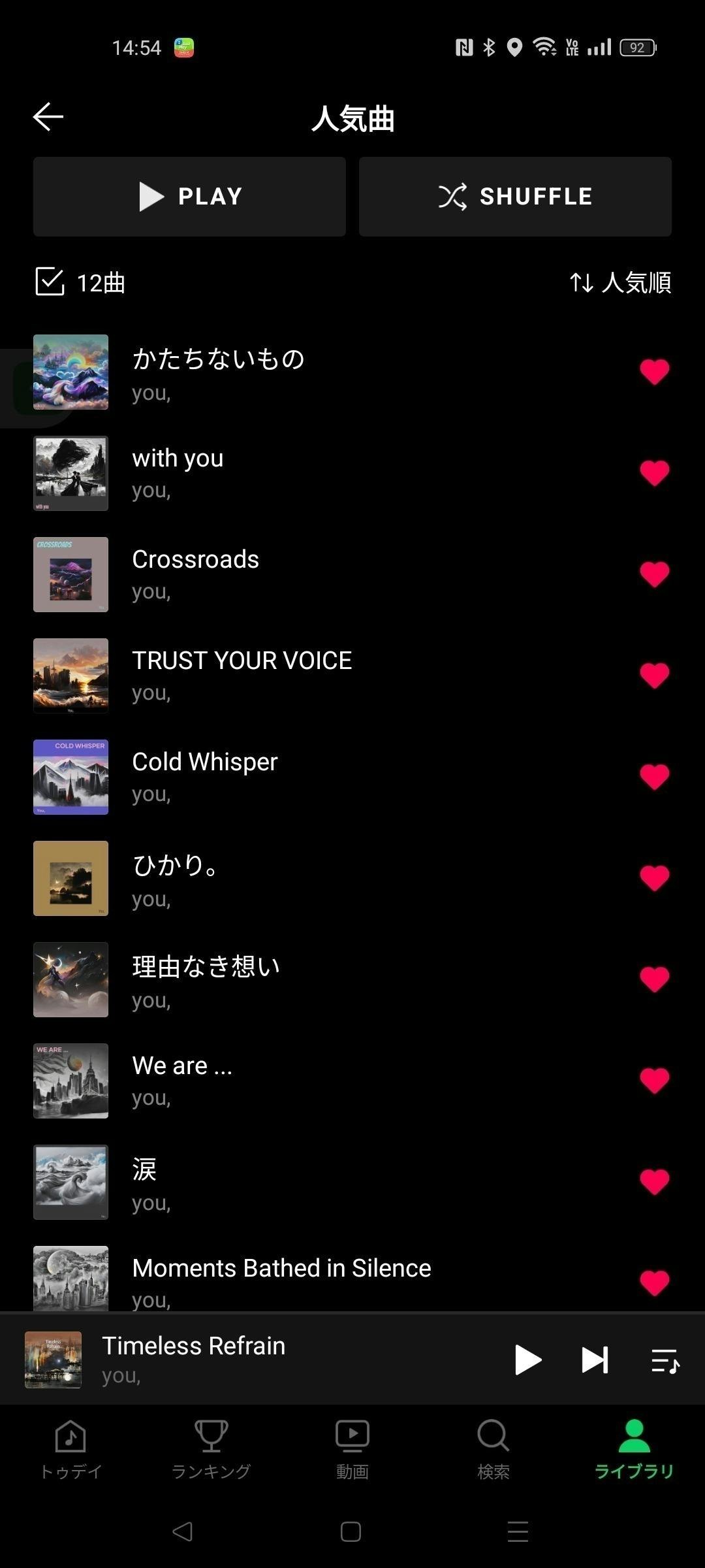 現在はシングル曲での音楽配信サービスのみですが、アルバムとしてリリースするとしたら?の時に収録タイトル候補の検討を、私you,と共に考えて頂きたいです。