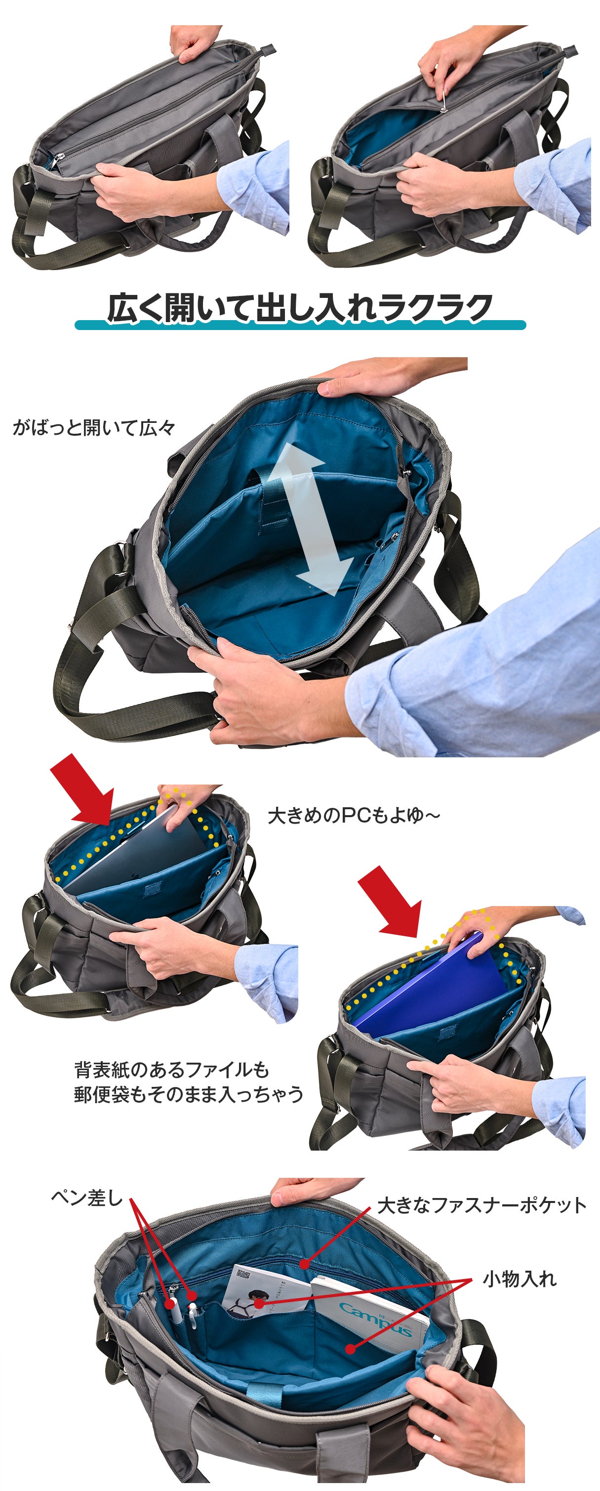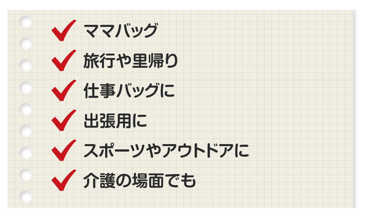 使ってみると、実に多くのシーンで役立つので「ついつい入れちゃう」方も多く。リュックとショルダーまたはトートバッグを併用していた方も「一つにまとめたくなります」。普段から少し大きめのバッグを持っていると荷物が増えた時にも余裕ですね。特に今回は