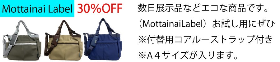 こちらのリターン品は、数日展示したり色交換などで戻ってきた商品を【MottainaiLabel】と称しているものです。当社としてはどうしても、完全な新品と同じように売ることをせず、かといって中古品でもないものを、エコな気持ちでご協力頂きたく思います。
