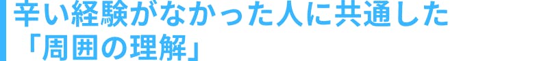 多くの人々が身近なコミュニティーでの無理解によって辛い経験をしているなかで、ごく少数の方は辛い経験がまったくなかったと回答しました。