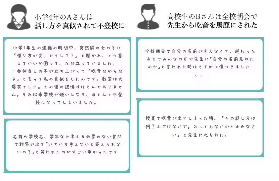吃音に対する無理解や認知の低さから、学校や家庭で辛い経験をした子供が大勢います。