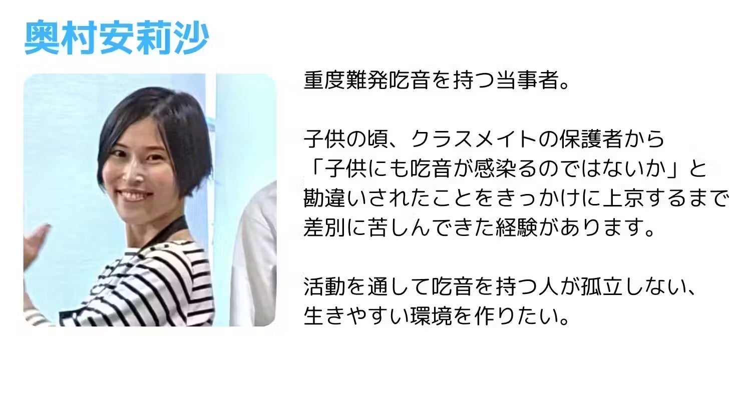 “吃音がある若者たちが、本当にやりたいことを諦めずに前向きに挑戦できている。“