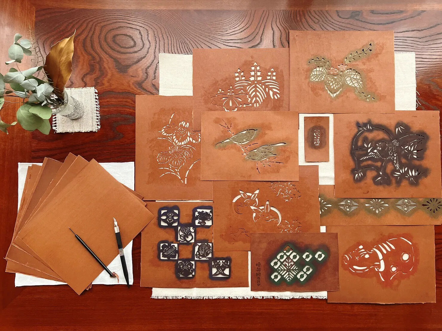 図柄に使われた草木や鶴亀、鯉、干支など喜多方市の文化財として36000以上の型紙が残されています。