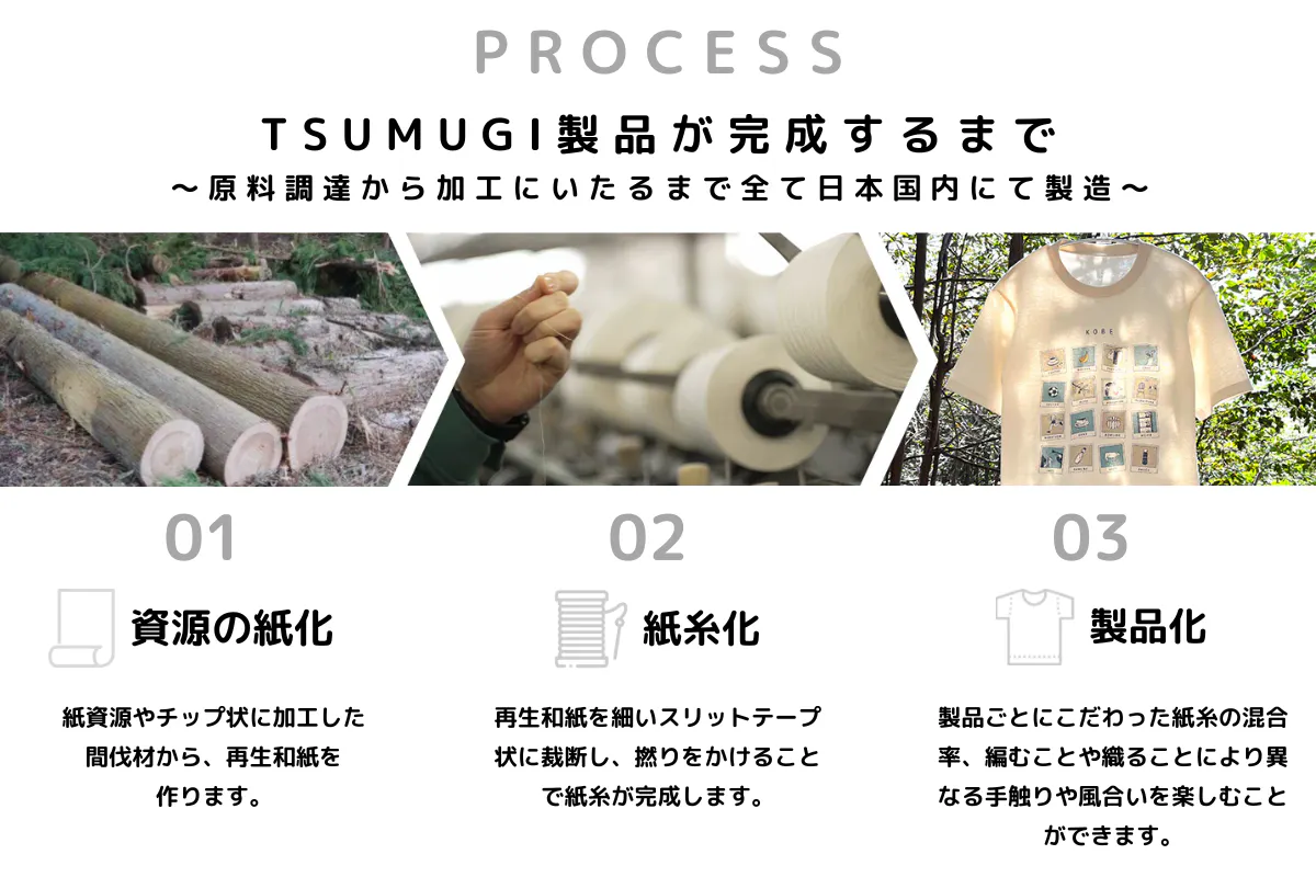 そうして生まれたのが、紙資源や間伐材を紙糸にアップサイクルする取り組みです。