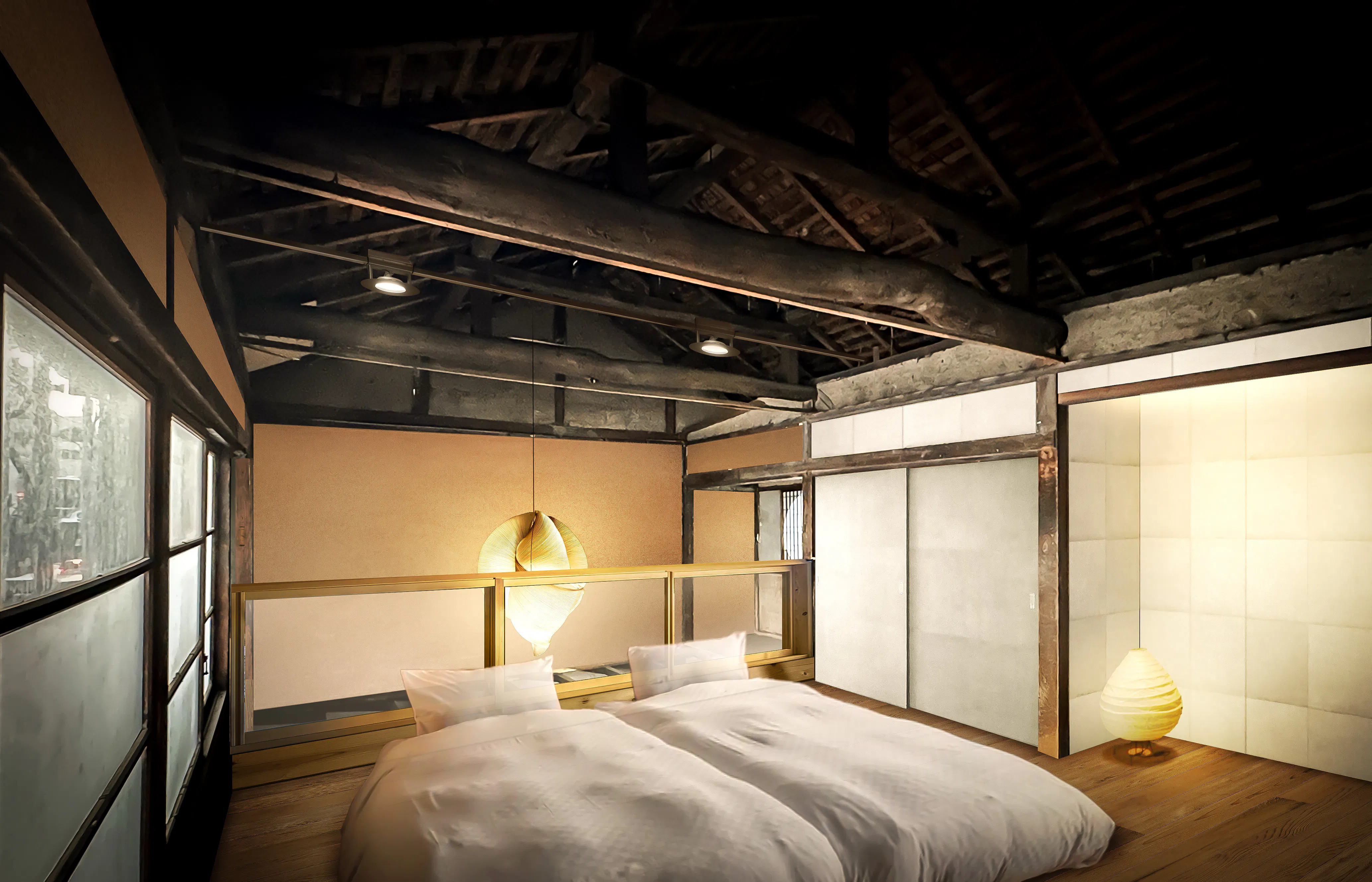 体験や販売のスペースだけでなく、古民家であることを活かした宿泊体験も提供予定です。キッチンやシャワーも備え付けており、2階を寝室として使用いただけます。
