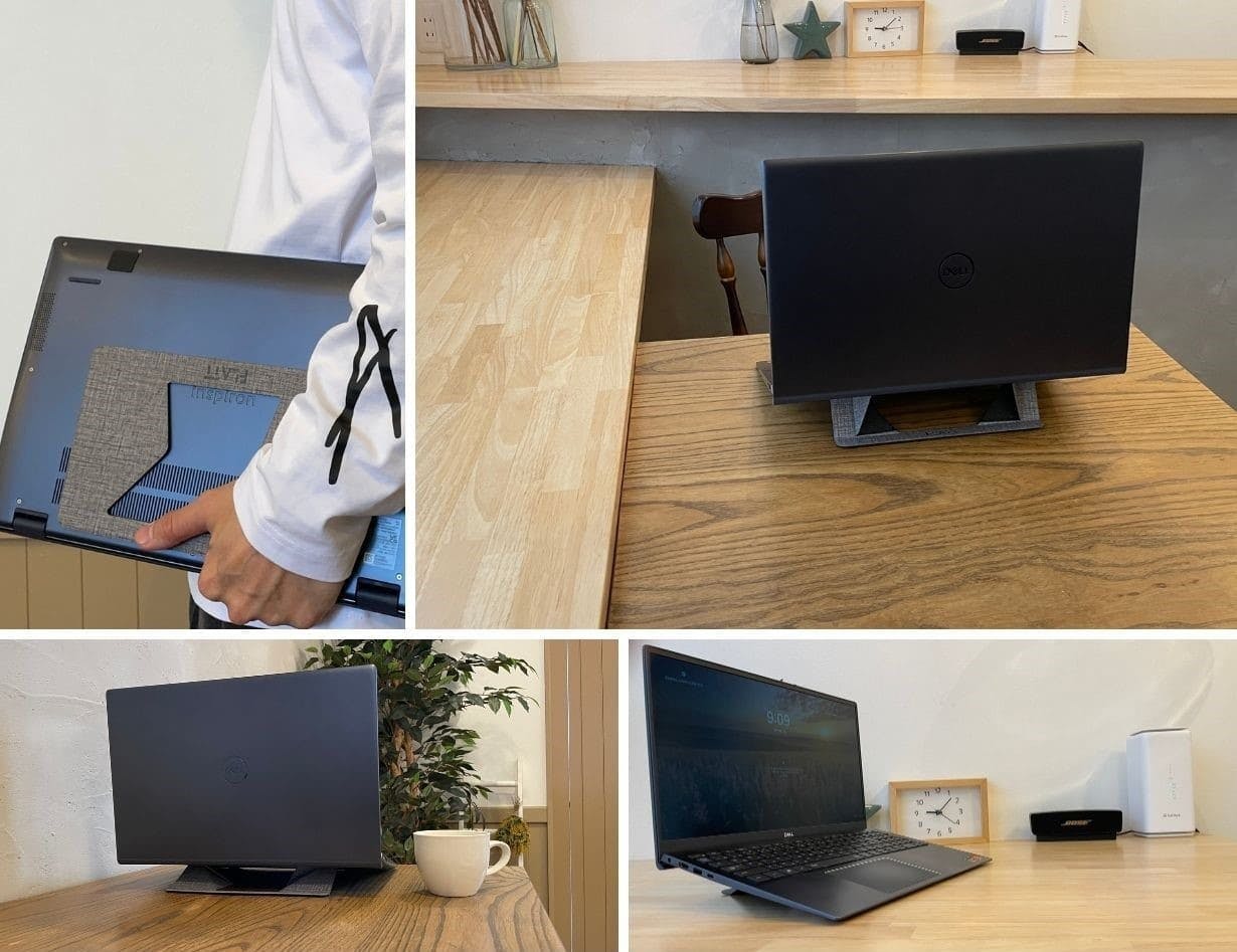 FLATTはセットアップした際に底面が開放され、ノートPCの放熱を助けます。