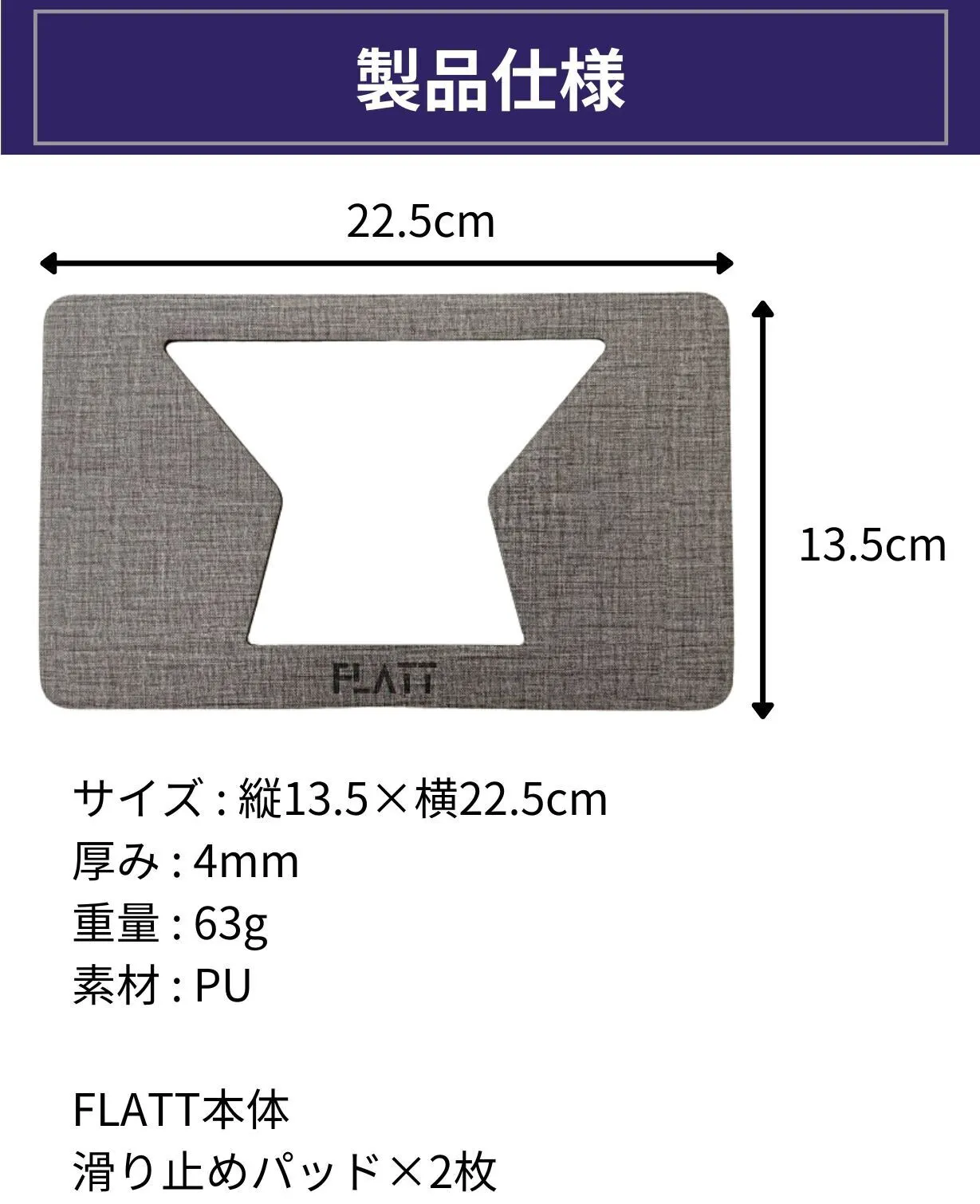 FLATTのサイズは22.5×13.5cm。このサイズ以上の多くのノートPCに適合します。