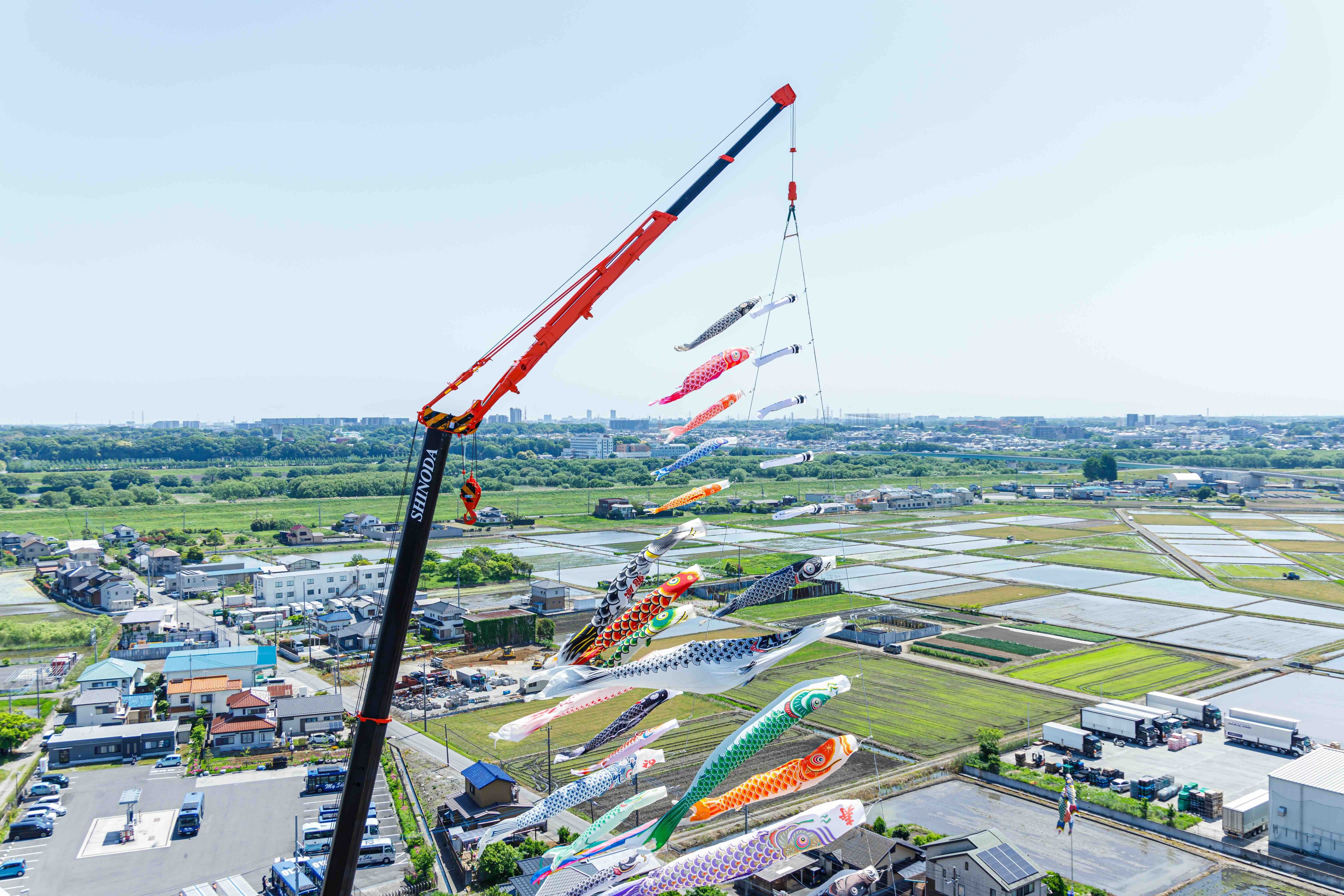 このように、どちらもイメージが良くないだけで、魅力的なところが沢山あると考えております。もっとクレーンオペレーターの魅力や埼玉県の魅力を伝えていきたいと考え、弊社のクレーンによる『高さ』と日本一の生産を誇る埼玉県の『鯉のぼり』、吉川市名物『なまず』を掛け合わせ地域の新たな魅力発信のひとつとして、なまずのぼりを大空へ舞わせます。