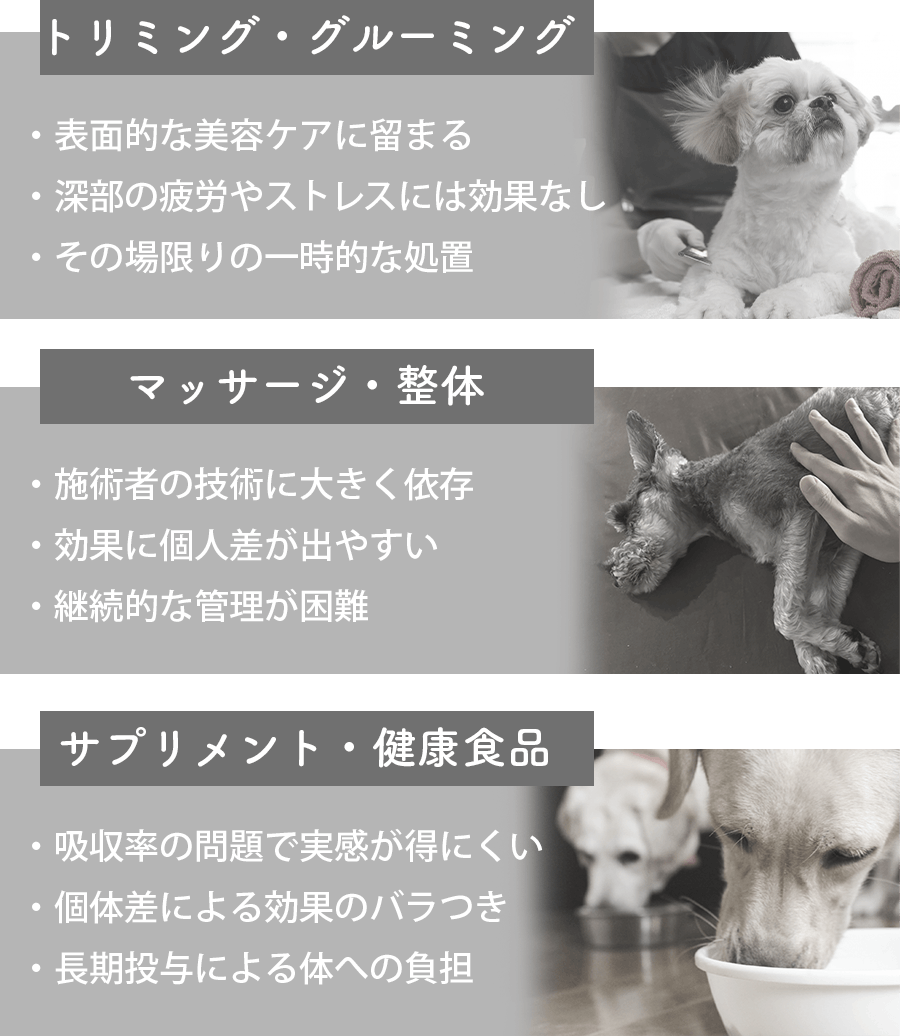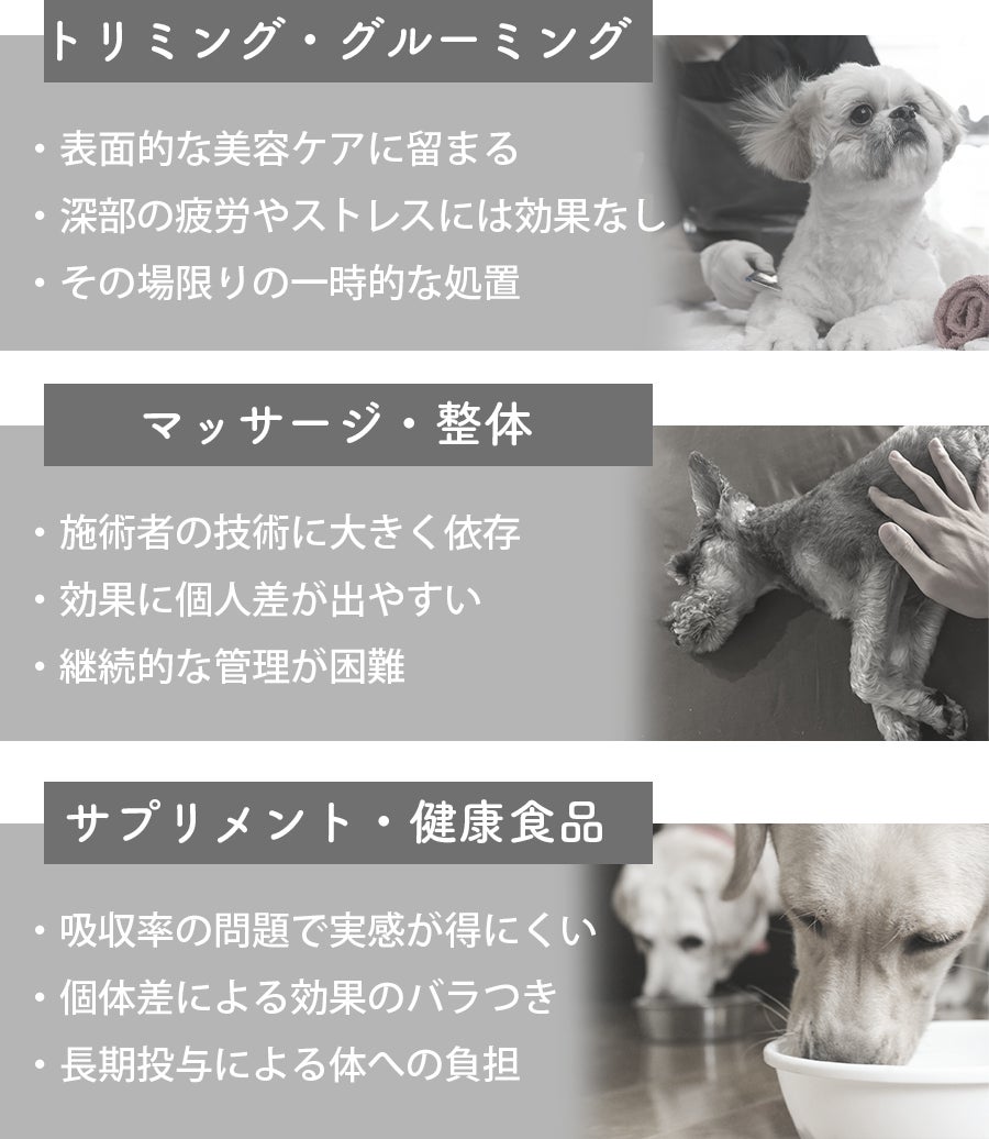 ペットたちは私たちと同じように、日々のストレスや疲労に悩まされています。でも、彼らには体調の不調を伝える言葉がありません。