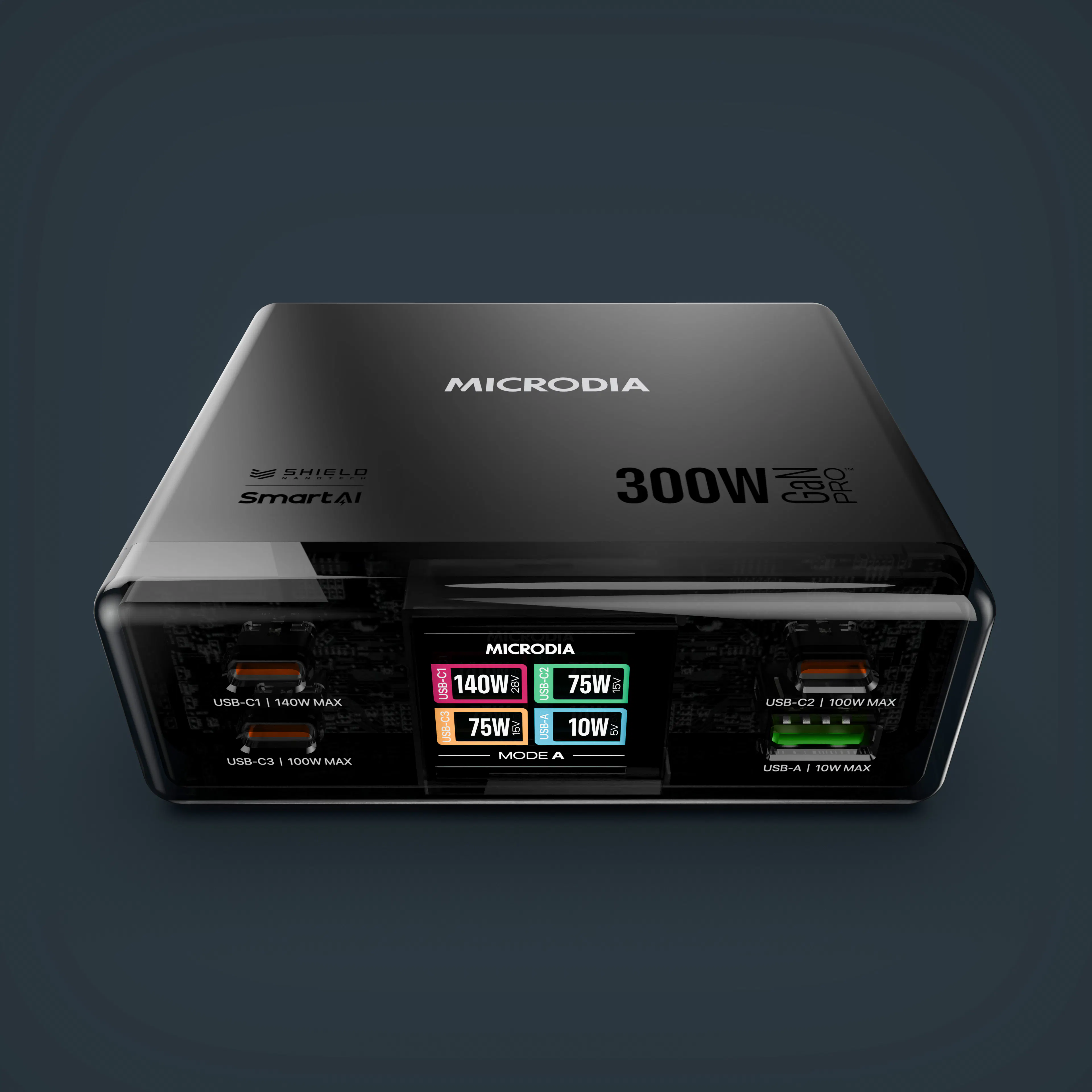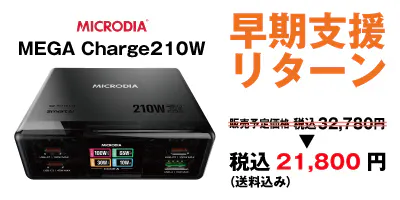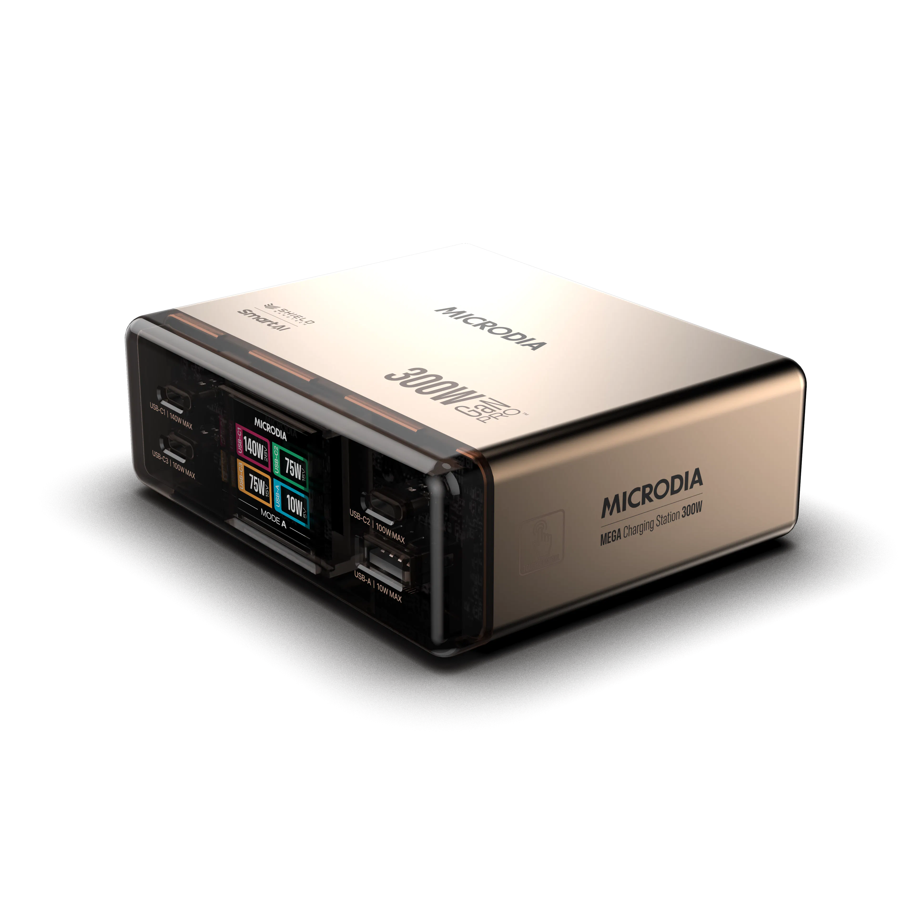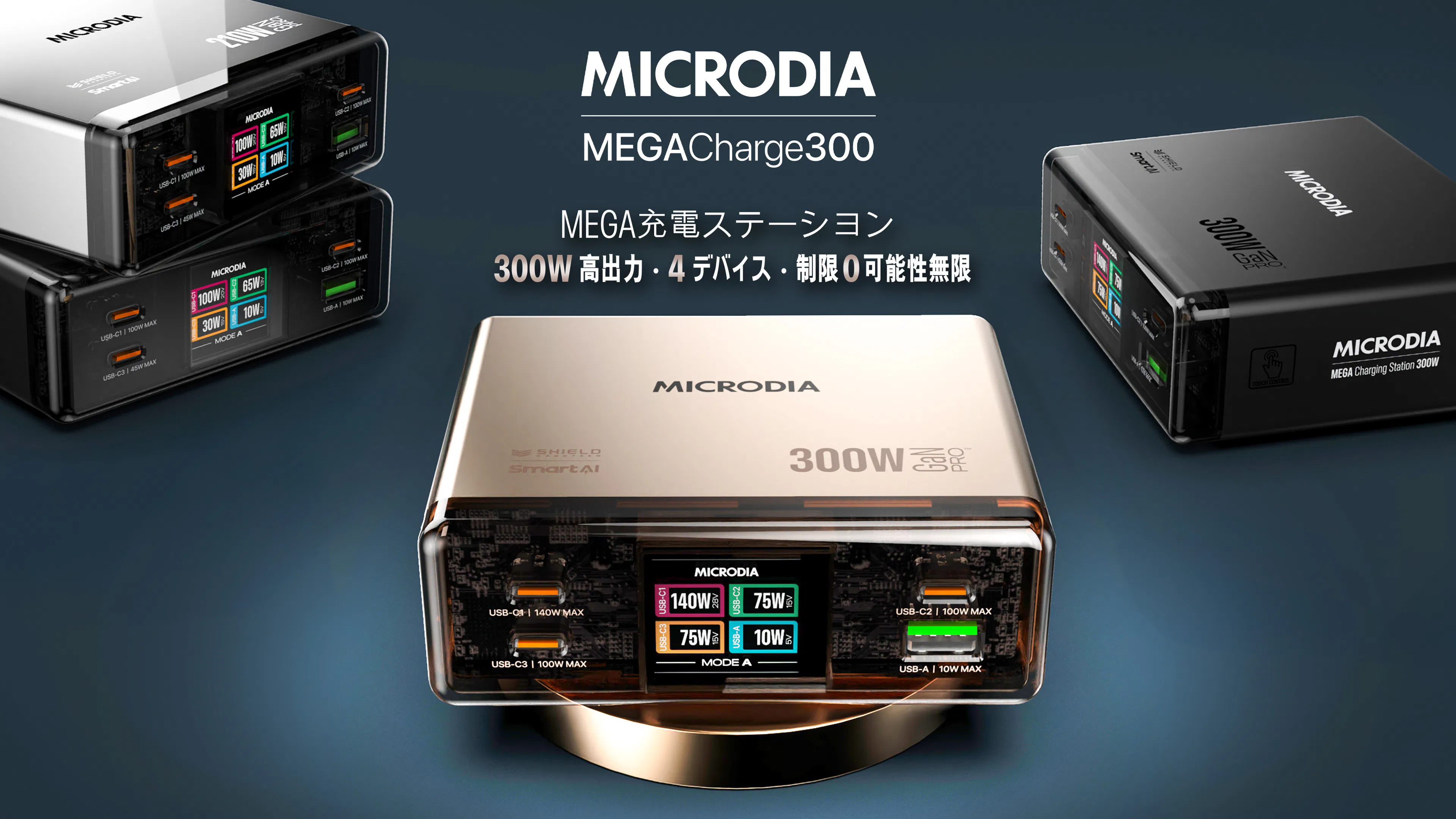 私たち宏福商事合同会社は、高性能モバイルアクセサリーや家電製品で世界的に認知されているリーディングメーカー「MICRODIA」と提携し、新商品「MegaCharge 300W」および「210W」をCAMPFIREでクラウドファンディングとしてお届けします!宏福商事合同会社はMICRODIAの日本正規総代理店です。MegaCharge 300Wは、手のひらサイズながら驚異の300W出力を実現する最先端のデスクトップ充電器です。現代のユーザーが求める「パワー」と「多機能性」に応えるため設計されたこの充電器は、複数のノートPC、タブレット、スマートフォン、スマートウォッチ、イヤホンなどを同時にスピードと安全性を犠牲にすることなく充電可能です。GaN ProやSmartAI™充電技術などの最先端技術により、安全性と効率性を兼ね備えた他に類を見ない充電体験を提供します。