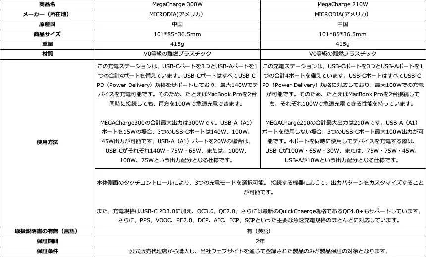 Q1.MegaCharge 300Wと210Wの違いは何ですか?