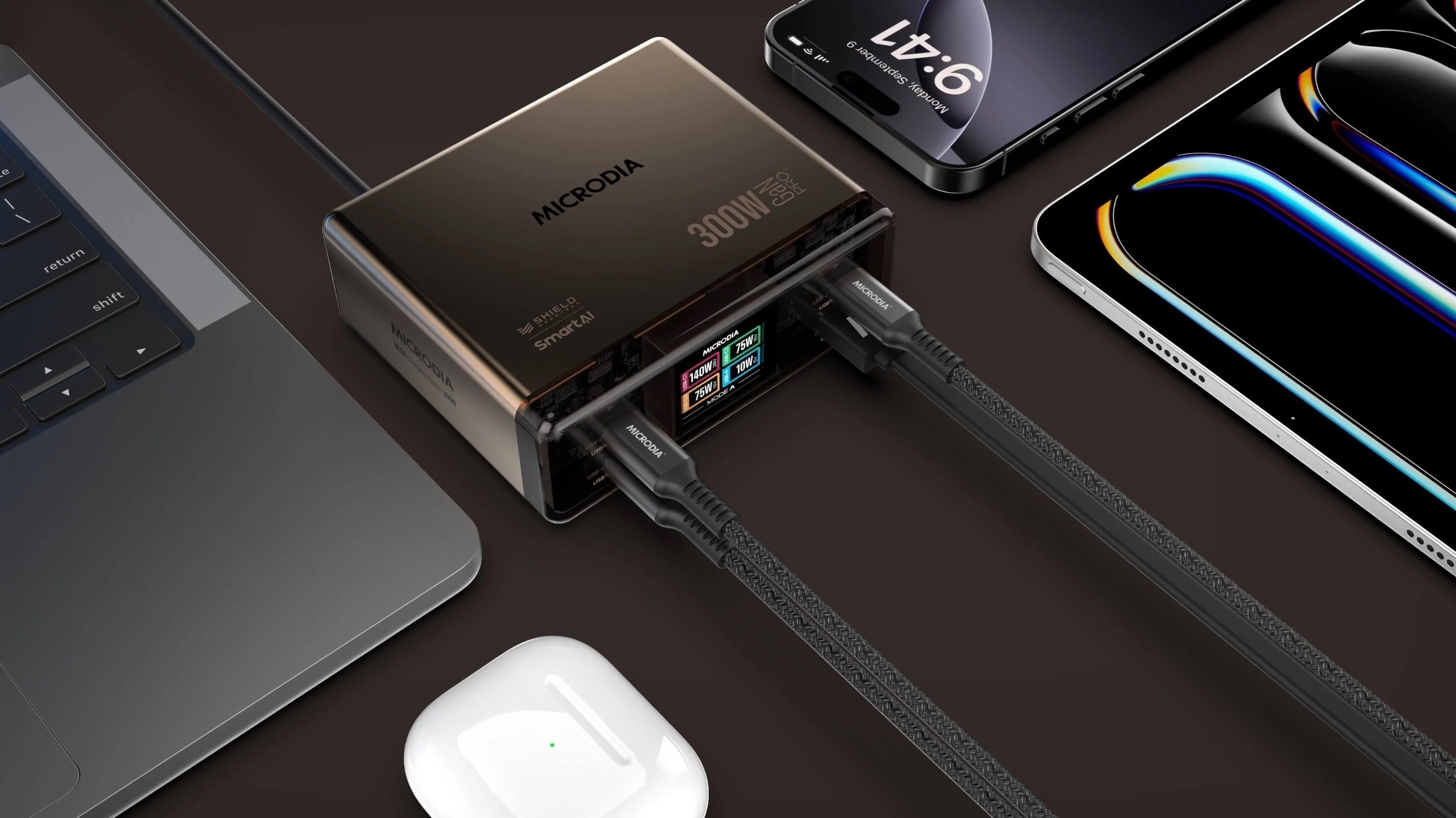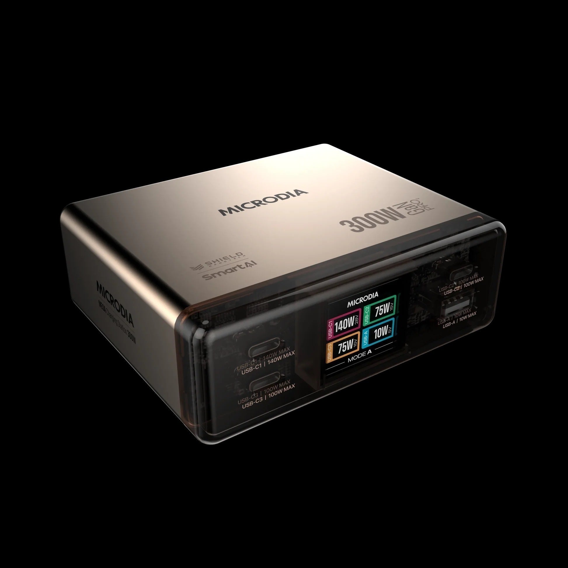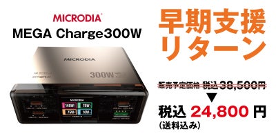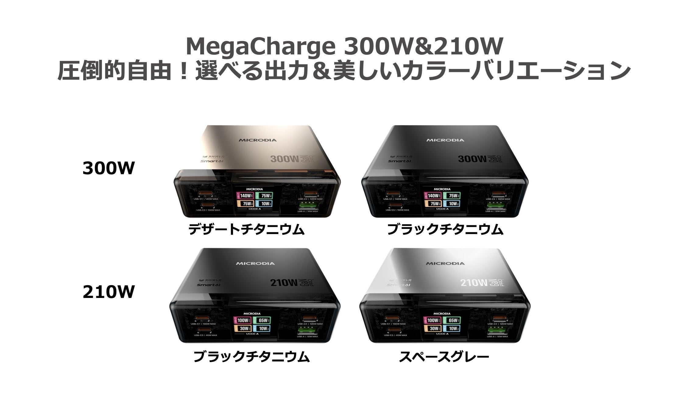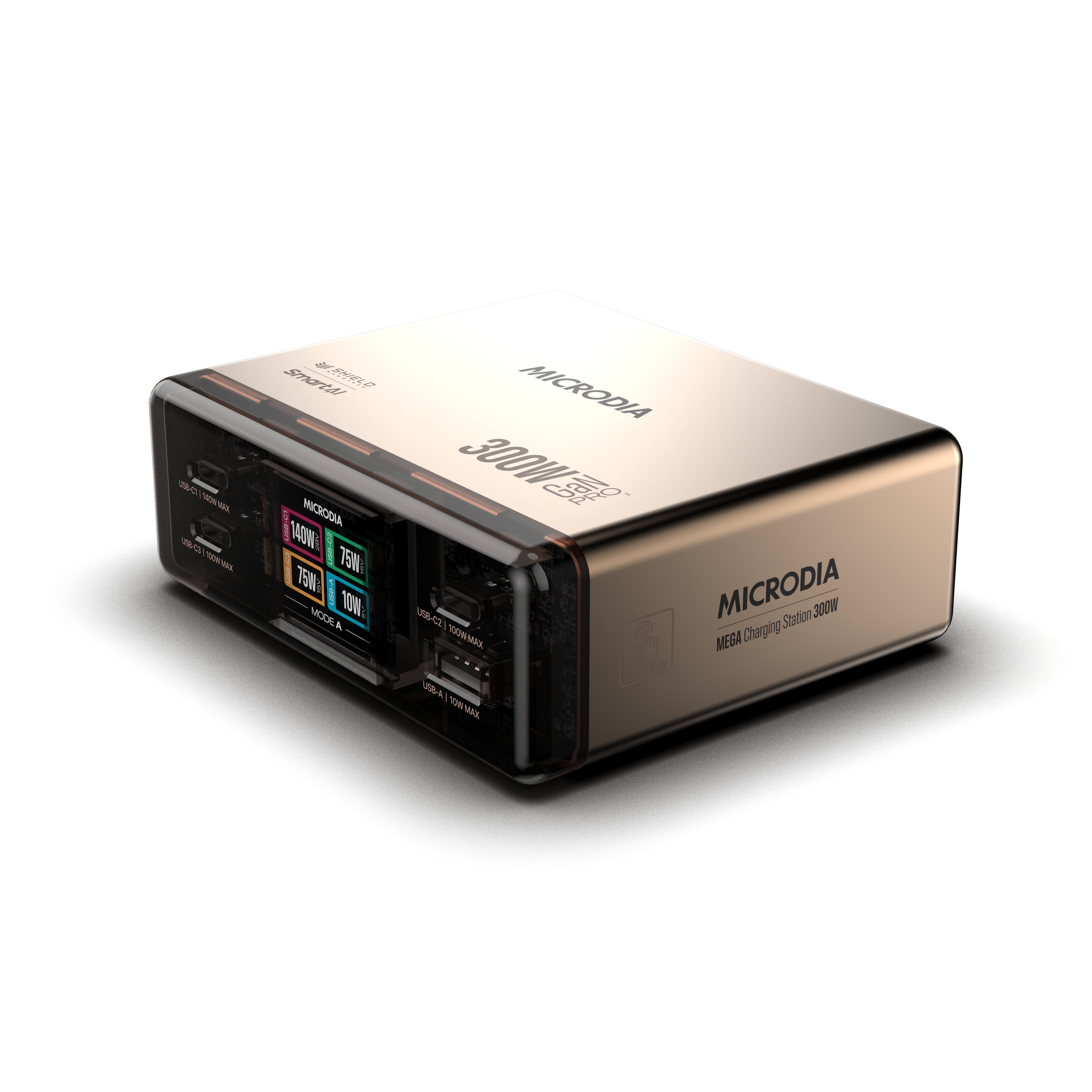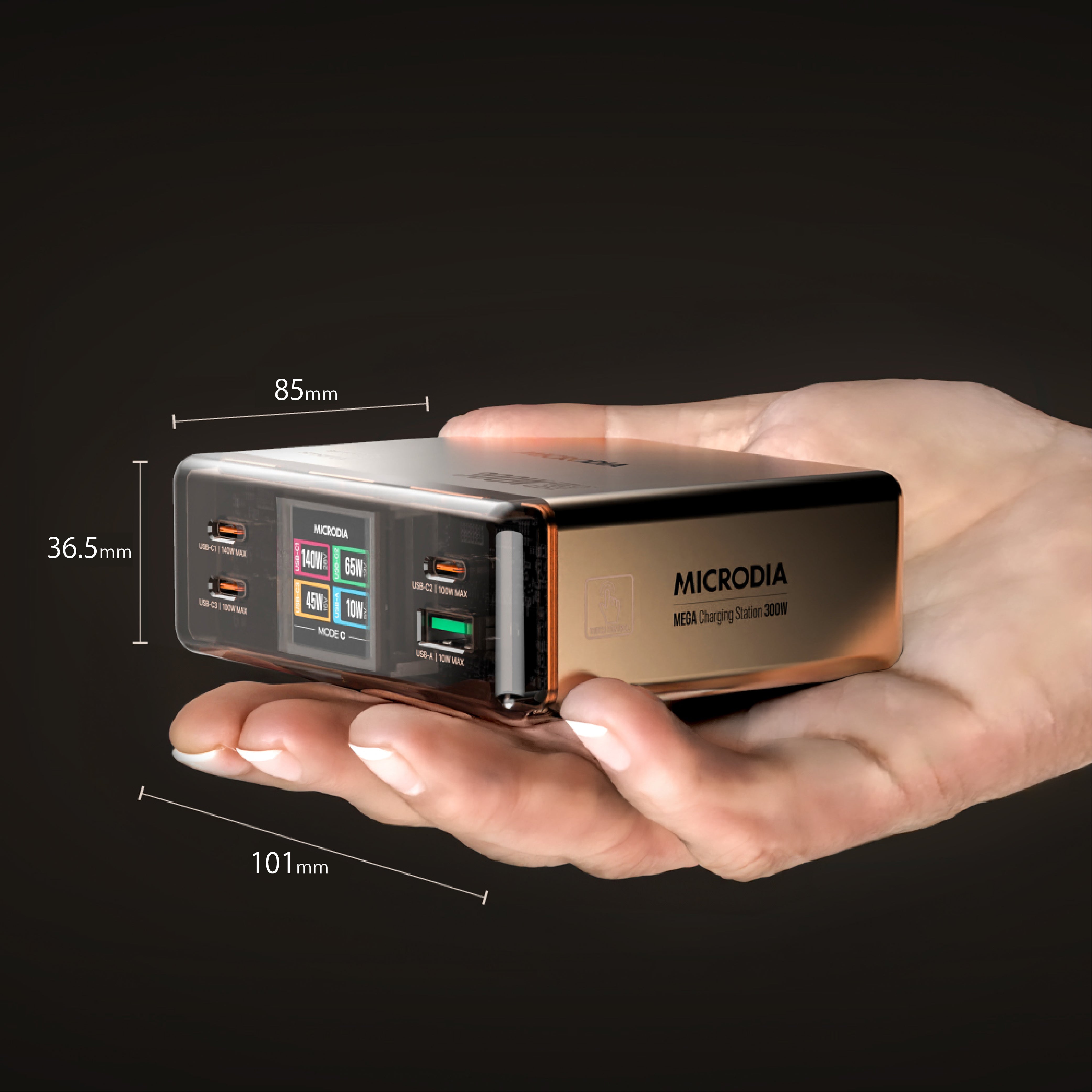私たち宏福商事合同会社は、高性能モバイルアクセサリーや家電製品で世界的に認知されているリーディングメーカー「MICRODIA」と提携し、新商品「MegaCharge 300W」および「210W」をCAMPFIREでクラウドファンディングとしてお届けします!宏福商事合同会社はMICRODIAの日本正規総代理店です。MegaCharge 300Wは、手のひらサイズながら驚異の300W出力を実現する最先端のデスクトップ充電器です。現代のユーザーが求める「パワー」と「多機能性」に応えるため設計されたこの充電器は、複数のノートPC、タブレット、スマートフォン、スマートウォッチ、イヤホンなどを同時にスピードと安全性を犠牲にすることなく充電可能です。GaN ProやSmartAI™充電技術などの最先端技術により、安全性と効率性を兼ね備えた他に類を見ない充電体験を提供します。