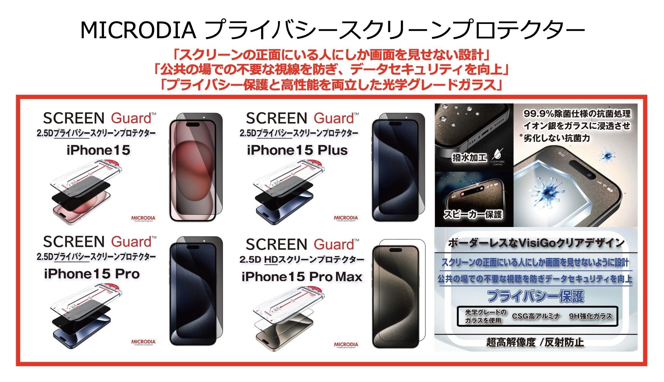 - 商品名:MICRODIA純正品 iPhone15シリーズプライバシースクリーンプロテクター(2枚入り)